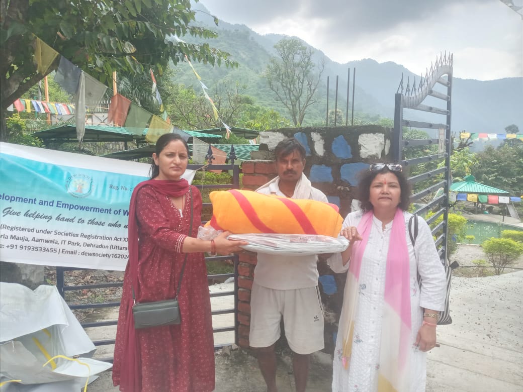 डेवलपमेंट एंड एम्पावरमेंट ऑफ वूमेन सोसाइटी ने आपदा प्रभावित सहस्त्रधारा क्षेत्र के कैरवाण गांव एवं मखड़ेती गांव में राहत सामग्री -कंबल एवं त्रिपाल आदि का वितरण किया।