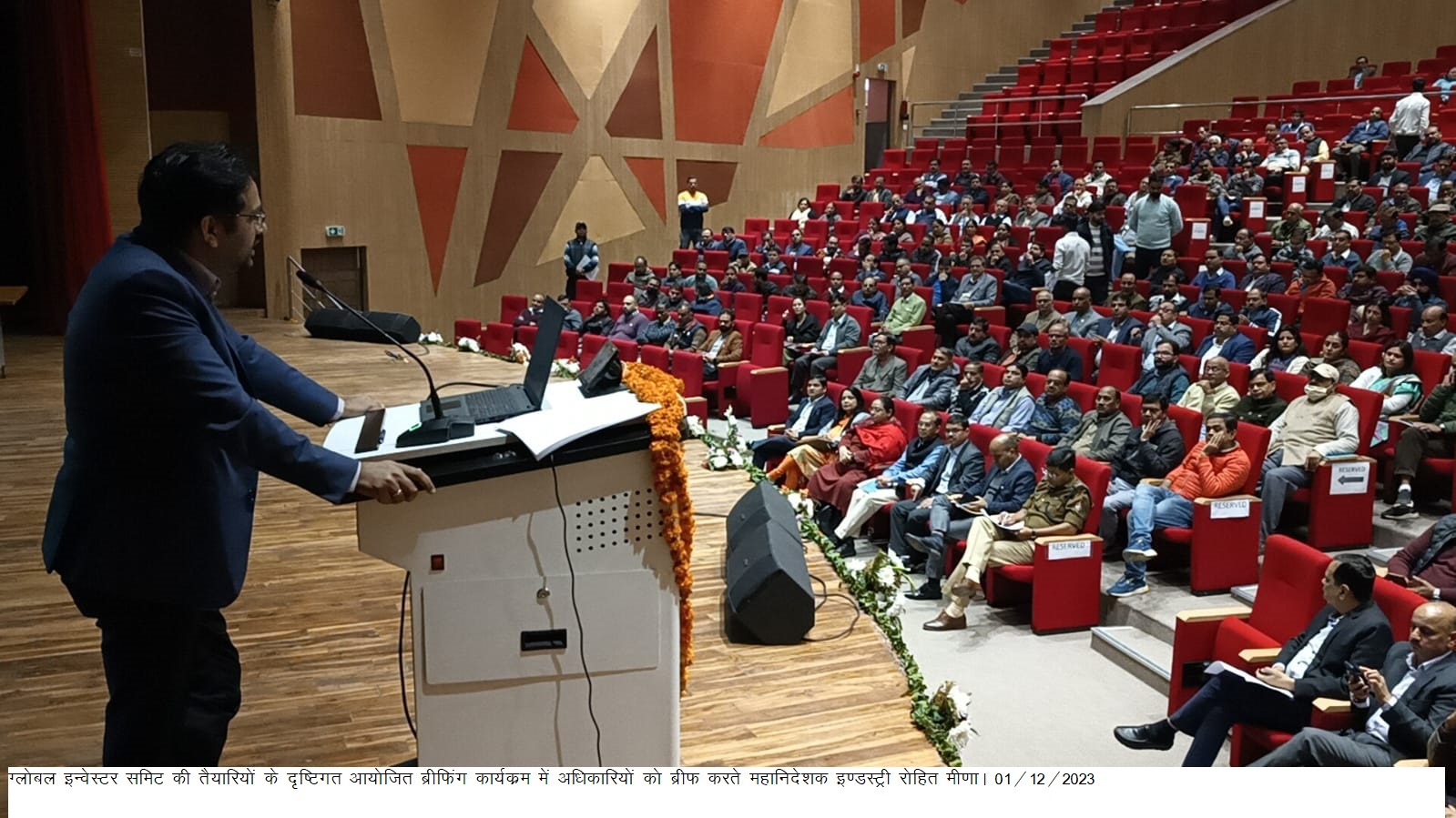 जनपद में 08 एवं 09 दिसम्बर 2023 को प्रस्तावित ग्लोबल इन्वेस्टर समिट की तैयारियों के दृष्टिगत हिमालयन सांस्कृतिक केन्द्र( (ऑडिटोरियम) निम्बूवाला में आयोजित ब्रीफिंग कार्यक्रम में महानिदेशक इण्डस्ट्री रोहित मीणा ने इन्वेस्टर समिट के दौरान अतिथि गणों के साथ डय्टी पर लगाये जा रहे लाईजन अधिकारियों को उनके कार्य एवं दायित्व समझाते हुए उनकी शंका/समस्याओं का भी समाधान किया। इस दौरान उन्होंने नामित सभी लाईजन अधिकारियों को उनके दायित्व समझाते हुए कहा कि नामित सभी अधिकारी अपने-अपने रूट प्लान, सीटिंग व्यवस्थाएं देख लें।