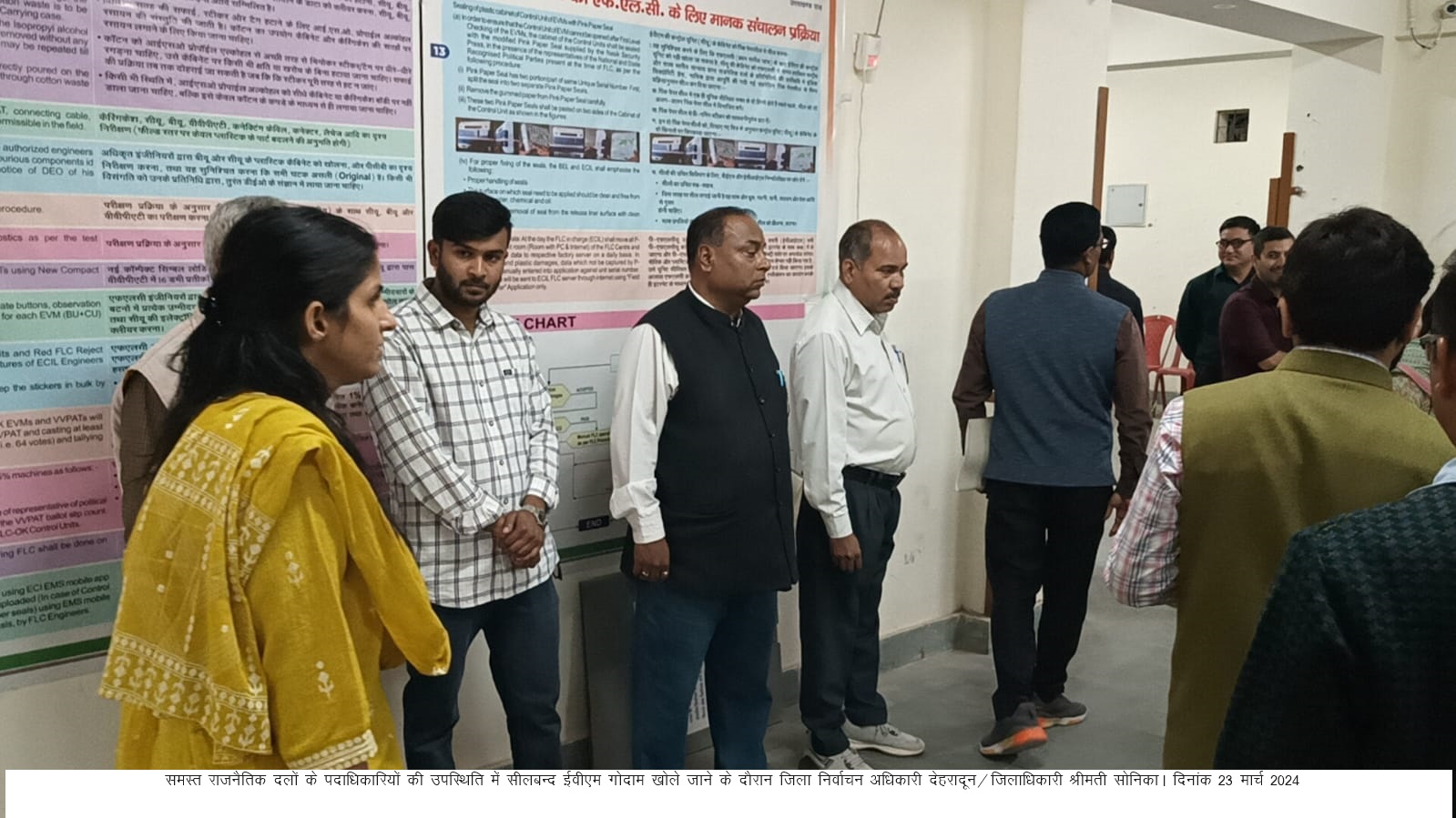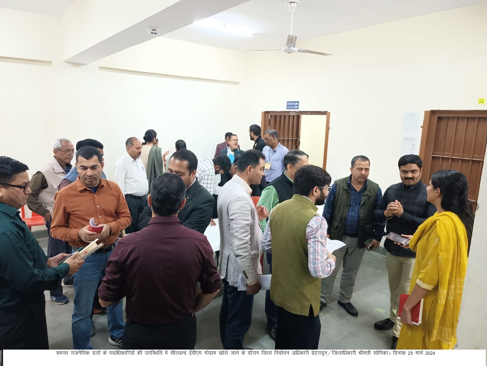 लोकसभा सामान्य निर्वाचन-2024 को निष्पक्ष एवं निर्विघ्न सम्पन्न कराने हेतु प्रथम ईवीएम, वीवीपैट रैण्डमाईजेशन के उपरान्त आज रिटर्निंग अधिकारी 01-टिहरी गढवाल/जिला निर्वाचन अधिकारी देहरादून/जिलाधिकारी श्रीमती सोनिका एवं समस्त राजनैतिक दलों के पदाधिकारियों की उपस्थिति में ईवीएम गोदाम का सील बंन्द ताला खोला गया तथा रैण्डमाईजेशन के अनुरूप विधानसभावार बनाये गए स्ट्रांगरूम में कड़ी सुरक्षा के बीच रखा गया।
