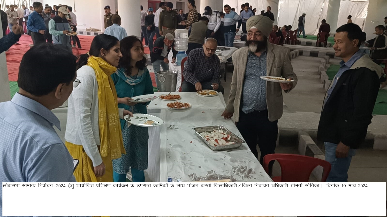 जिलाधिकारी/जिला निर्वाचन अधिकारी श्रीमती सोनिका प्रशिक्षण ने प्राप्त करने आए कार्मिकों के साथ भोजन कर  अनुभवों एवं उनकी समस्याओं एवं सुझाव भी सुना।