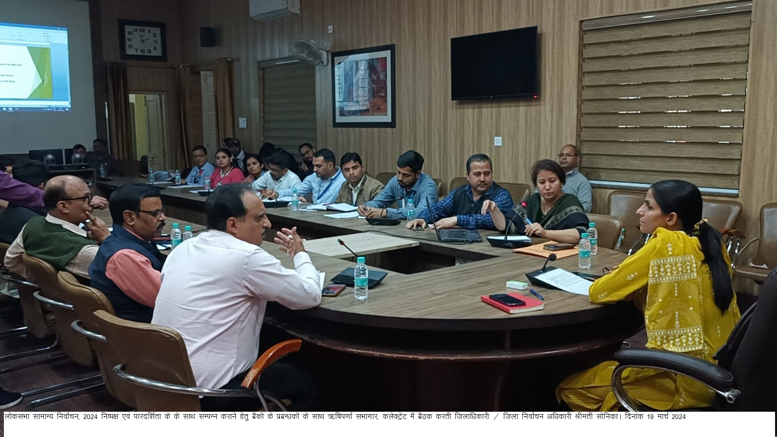 जिलाधिकारी / जिला निर्वाचन अधिकारी श्रीमती सोनिका ने जनपद के बैंको की विभिन्न शाखाओं के प्रतिनिधियों के साथ बैठक की।