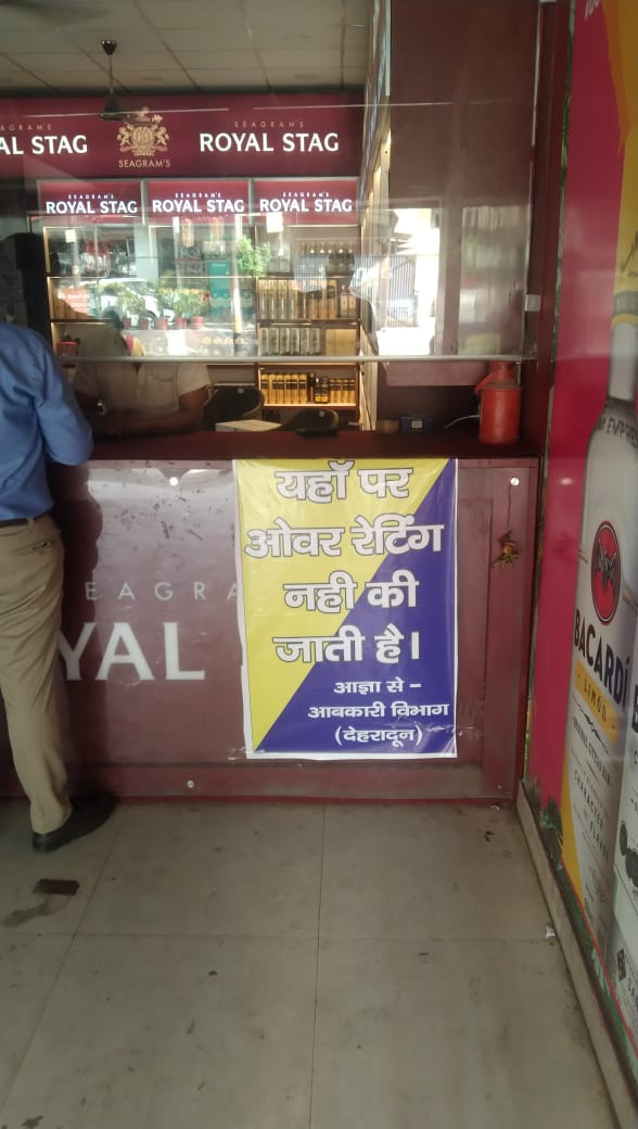 जिला आबकारी अधिकारी ने अवगत कराया कि जिलाधिकारी के निर्देशों के अनुपालन में मदिरा की दुकान आराघर, घंटाघर, गांधी रोड, पटेल नगर, निरंजनपुर, पलटन बाजार, जाखन, डालनवाला राजपुर में बैनर चस्पा किए गए हैं तथा जल्द ही सभी देसी विदेशी मदिरा की दुकानों पर पोस्टर बैनर चस्पा करने के निर्देश दिए गए हैं।