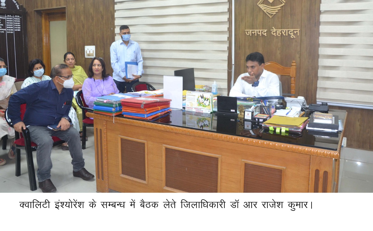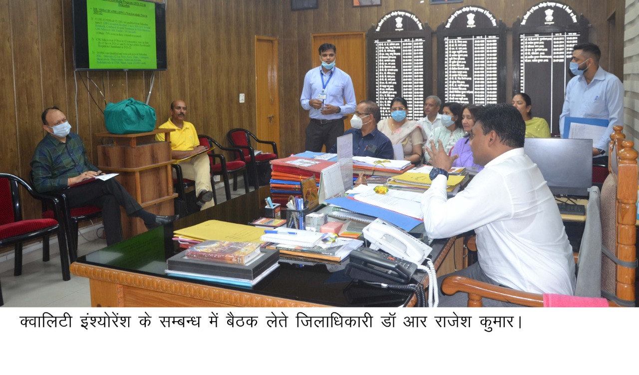 जिलाधिकारी डॉ आर राजेश कुमार ने चिकित्सा विभाग क्वालिटी इंश्योरेंश के सम्बन्ध में बैठक ली। जिलाधिकारी ने मुख्य चिकित्सा अधिकारी से क्वालिटी इंश्योरेंश आदि के मानकों के संबंध में जानकारी प्राप्त की। संबंधित अधिकारियों को बैठक में तैयारी के साथ न आने पर नाराजगी जाहिर करते हुए अगली बैठक में पूरी तैयारी के साथ प्रतिभाग करने के निर्देश दिए।