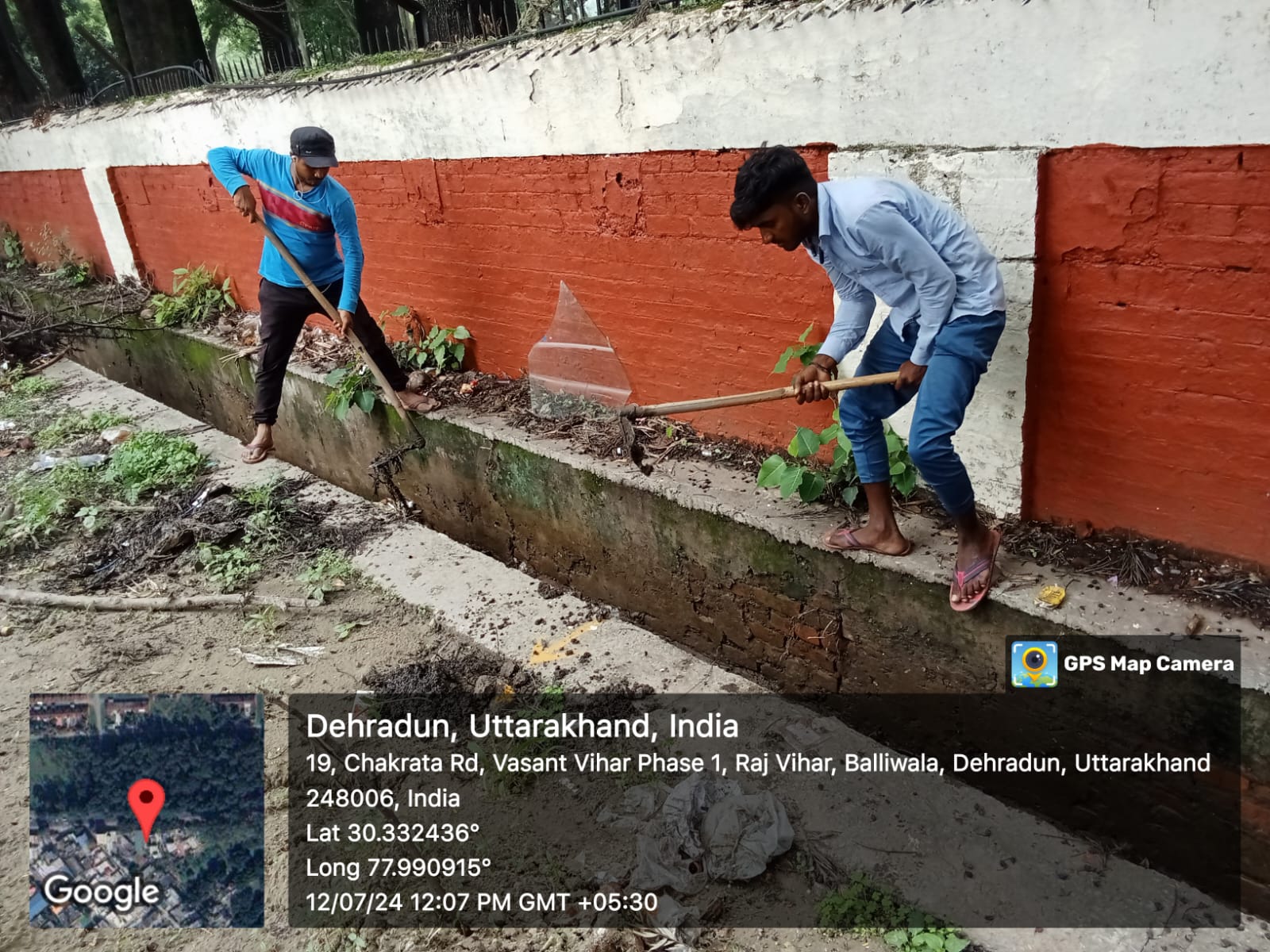 आज बकरालवाला, चंद्रमणि शमशानघाट का नाला वसंत विहार से पंडितवाड़ी, डिफेंस कालोनी, बल्लुपुर से जीएमएस रोड आदि स्थानों पर उपकरण एवं पर्यावरण मित्रों के माध्यम से नालों एवं परिसरों की सफाई कार्य गतिमान है।