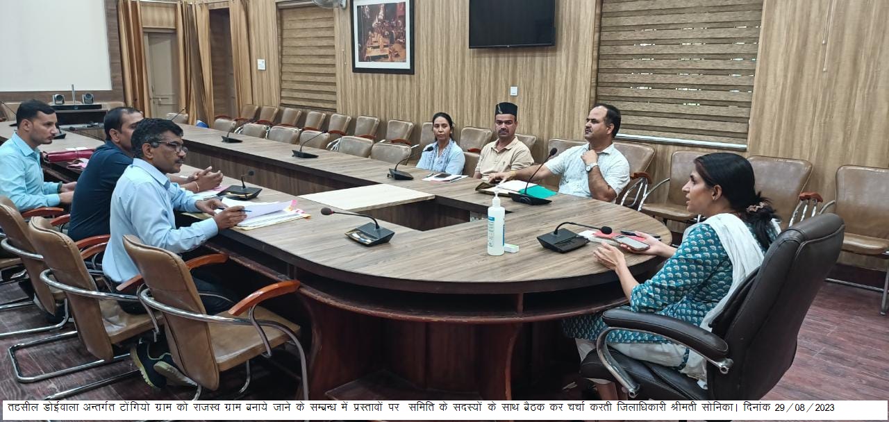 जिलाधिकारी श्रीमती सोनिका ने डोईवाला अन्तर्गत टोंगियो ग्राम को राजस्व ग्राम बनाये जाने के सम्बन्ध में बैठक की।