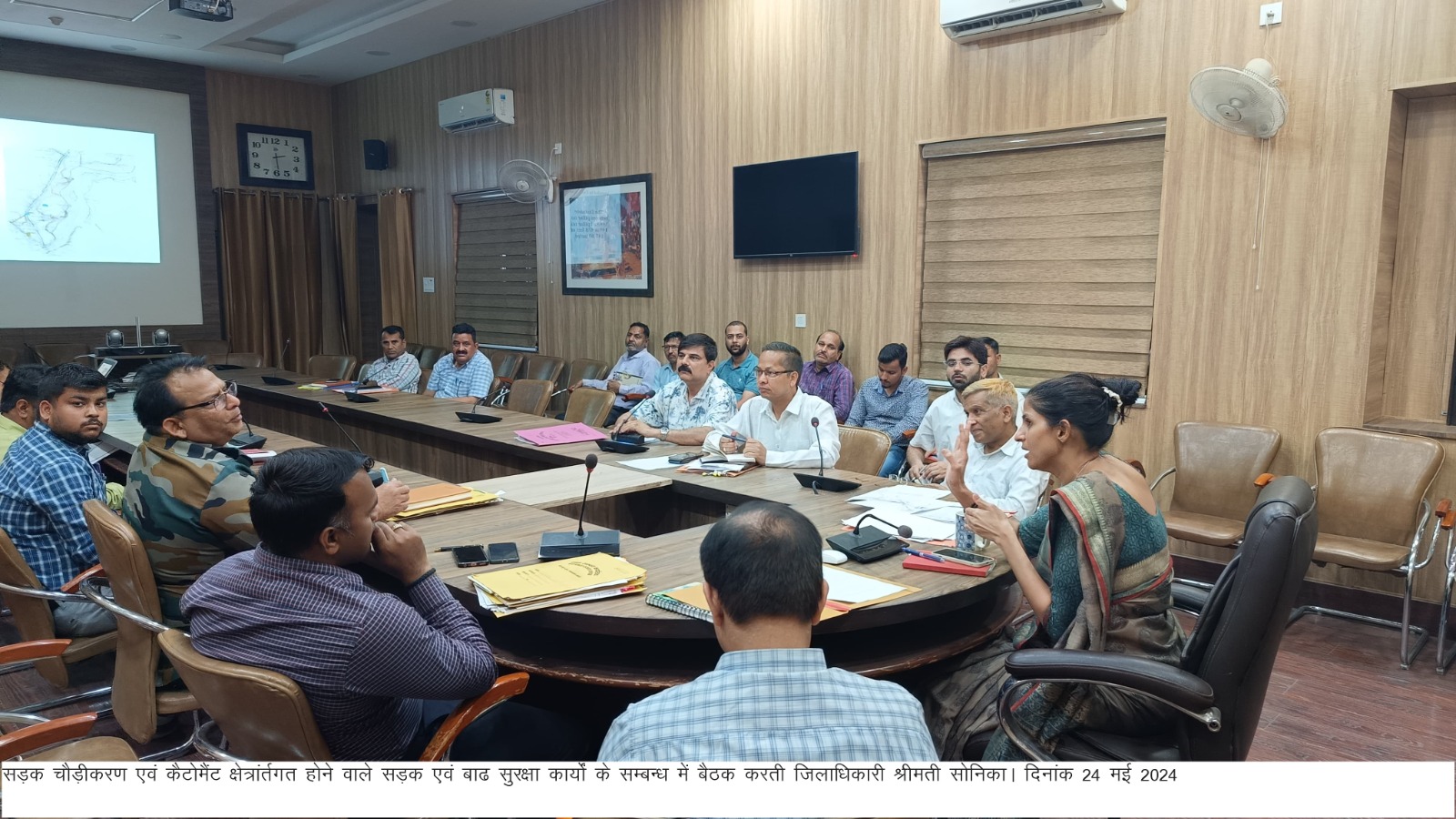 जिलाधिकारी श्रीमती सोनिका ने ऋषिपर्णा सभागार कलैक्ट्रट में सेना एवं कैटोमैंट बोर्ड एवं लो.नि.वि, स्मार्ट सिटी परियोजना लि0 के अधिकारियों के साथ बैठक करते हुए चकराता रोड के चौड़ीकरण के संबंध में कैटोमैंट क्षेत्रांर्तगत होने वाले सड़क एवं बाढ सुरक्षा कार्यांे की अनुमति के संबंध में चर्चा करते हुए आवश्यक दिशा- निर्देश दिए।