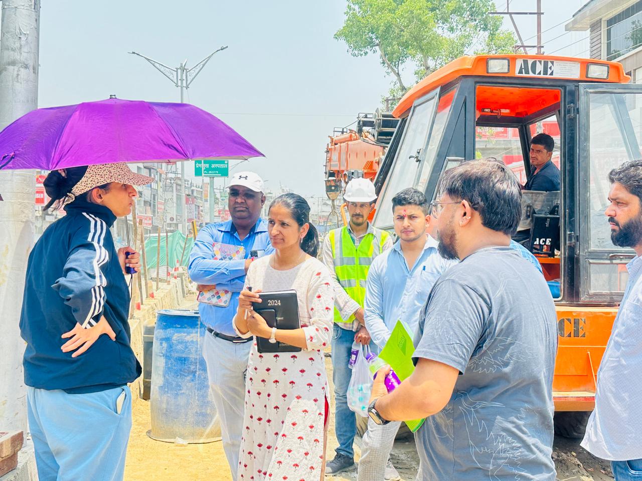 जिलाधिकारी श्रीमती सोनिका ने आज सहारनपुर चौक से भंडारी बाग तक चल रहे निर्माण कार्यों का पैदल स्थलीय निरीक्षण करते हुए कार्यदाई संस्था के अधिकारियों को मानसून से पूर्व कार्यों को शीघ्र पूर्ण करने के निर्देश दिए।