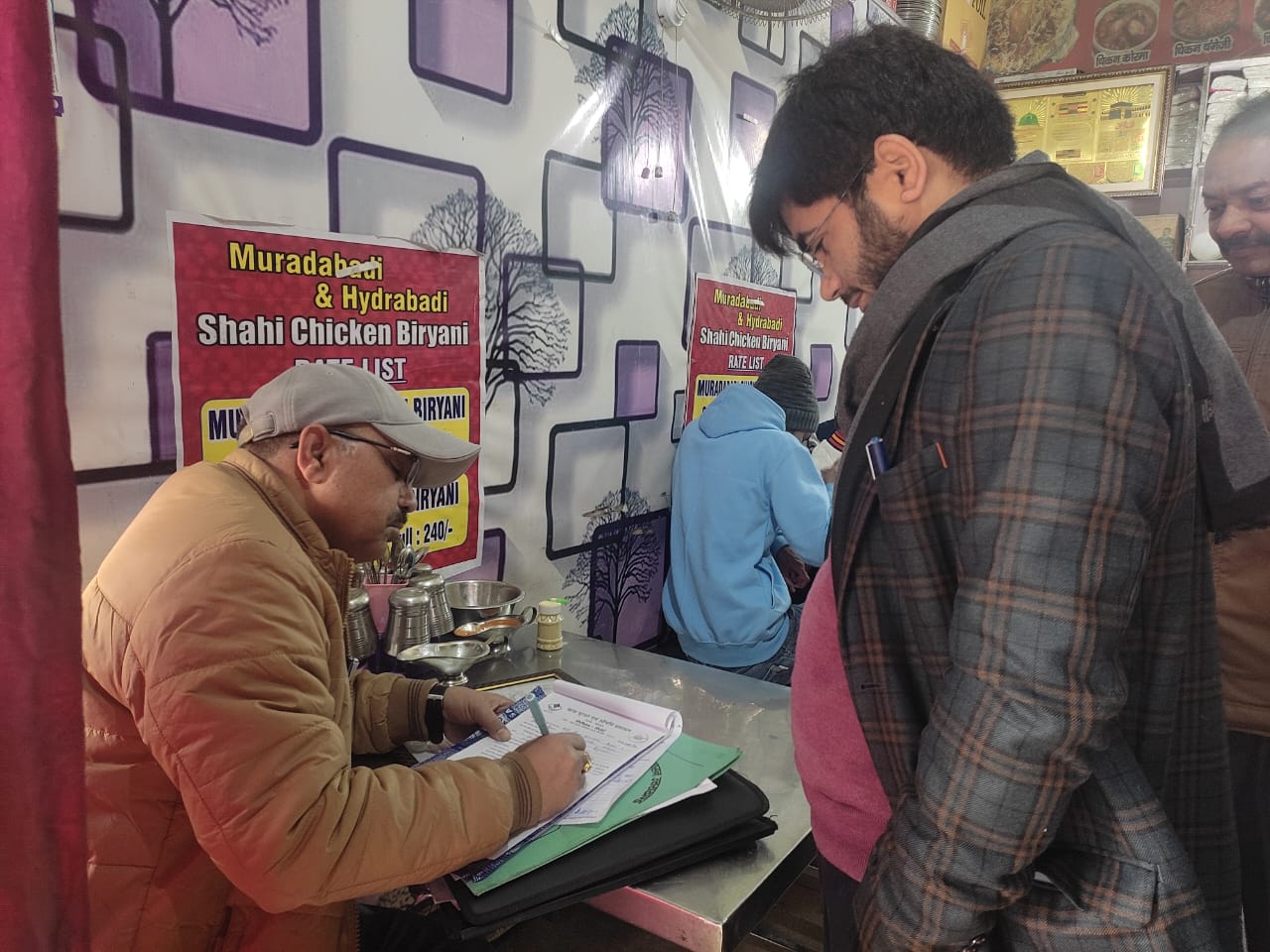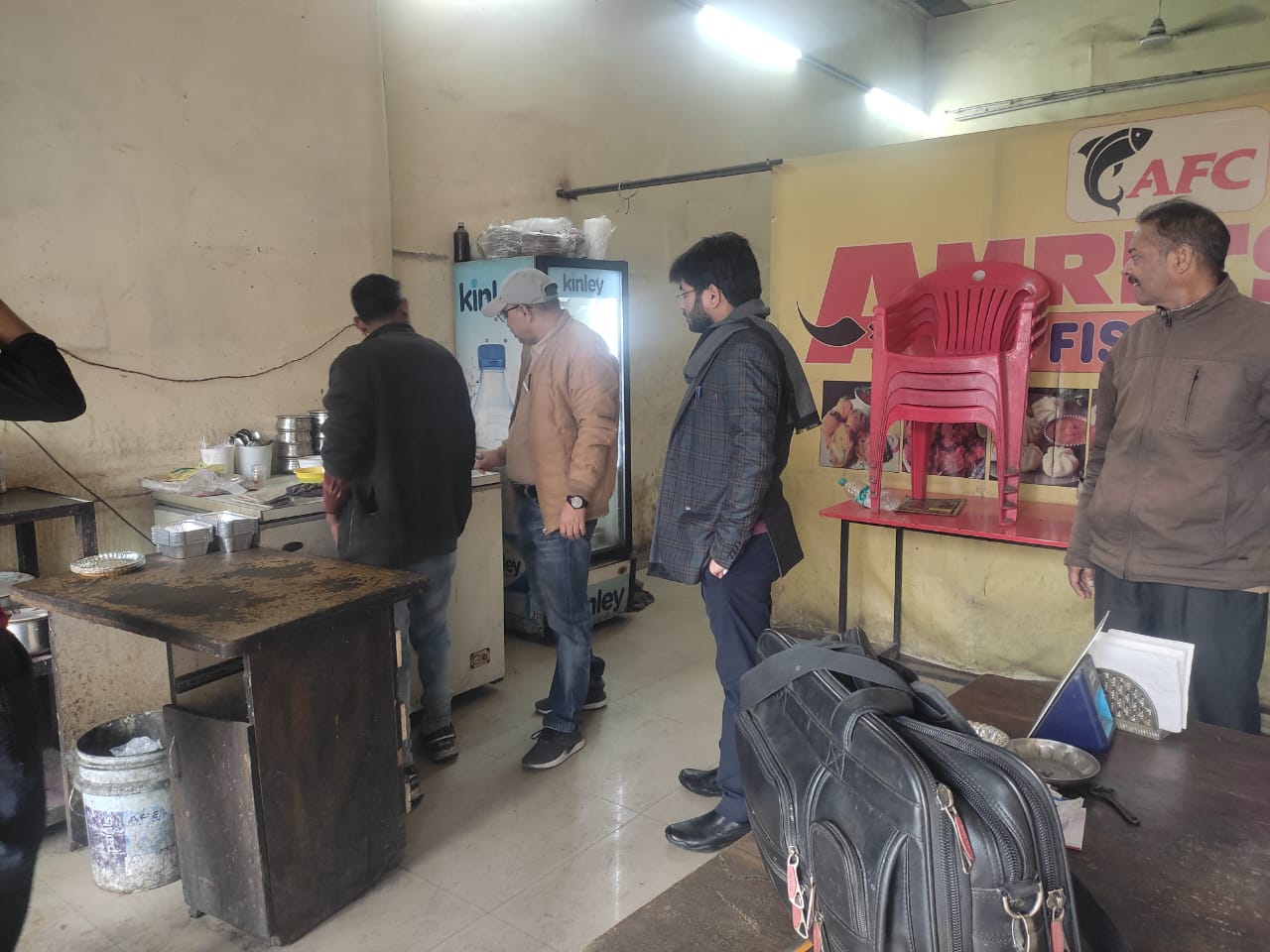 शमशेर सिंह मीट की दुकान पर लाइसेंस नहीं पाया गया तथा सफाई व्यवस्था भी असंतोषजनक पाई गई। रॉयल मुरादाबादी बिरयानी (ईदगाह)पर लाइसेंस की वैधता समाप्त पाई गई तथा सफाई व्यवस्था भी असंतोषजनक पाई गई। होटल सिद्धार्थ पैराडाइज में वेस्ट कंट्रोल सर्टिफिकेट नहीं पाया गया तथा मांस का बिल भी प्रस्तुत नहीं कर पाए। अमृतसरी फिश कॉर्नर में लाइसेंस नहीं पाया गया, सफाई व्यवस्था भी असंतोषजनक पाई गई, पनीर सैंपल का नमूना लिया गया। पंजाबी रसोई में लाइसेंस नहीं पाया गया तथा सफाई व्यवस्था भी असंतोषजनक पाई गई, मांस का बिल भी उपलब्ध नहीं करा पाए। येलो चिल्ली रेस्टोरेंट में लाइसेंस प्रस्तुत नहीं कर पाए तथा सफाई व्यवस्था भी असंतोषजनक पाई गई, मांस का बिल भी उपलब्ध नहीं करा पाए।