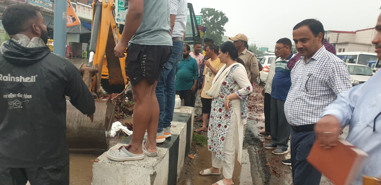 जिलाधिकारी श्रीमती सोनिका ने देहरादून से भानियावाला तक वर्षा के बीच पानी निकासी का अवलोकन किया।