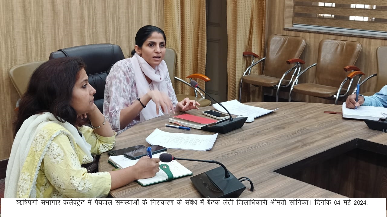 जिलाधिकारी श्रीमती सोनिका ने ऋषिपर्णा सभागार कलेक्टेट में पेयजल एवं लीकेज की समस्याओं के दृष्टिगत बैठक लेते हुए पेयजल एवं जलसंस्थान के अधिकारियों सहित सम्बन्धित विभागों के अधिकारियों को आवश्यक दिशा-निर्देश दिए।