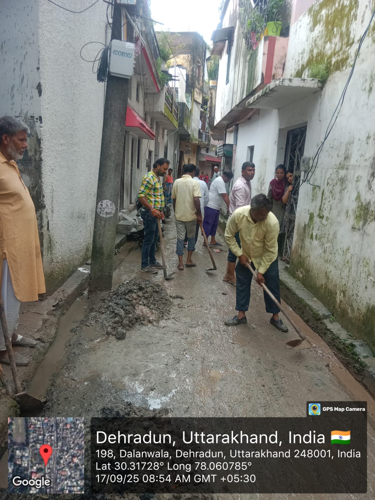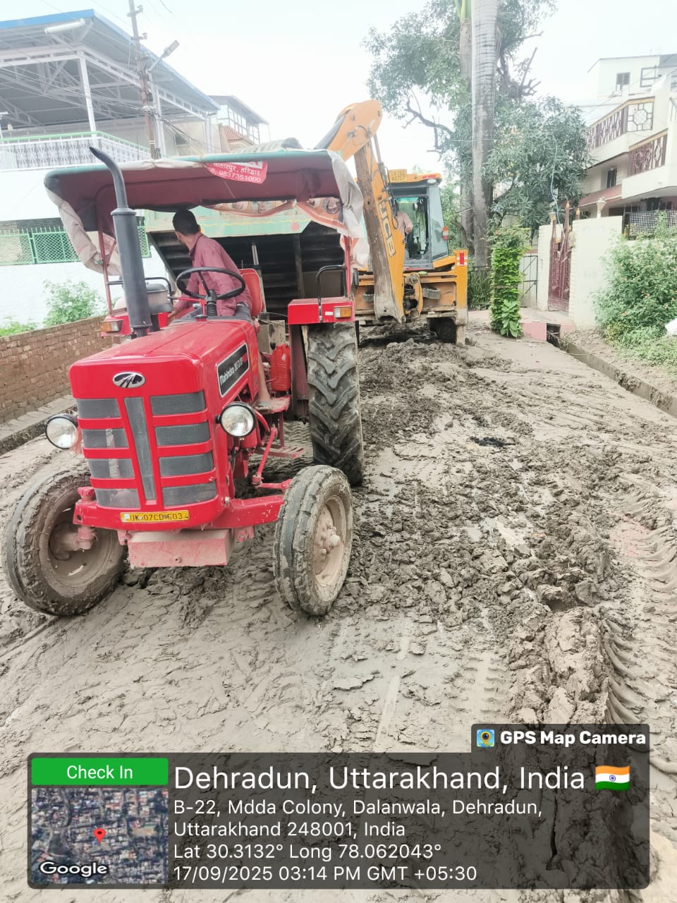 डालनवाला एमडीडी कॉलोनी में अतिवृष्टि से आए मालवा, गाद लोगों के घरों एवं सड़को पर भरने से जनजीवन प्रभावित हो गया था।