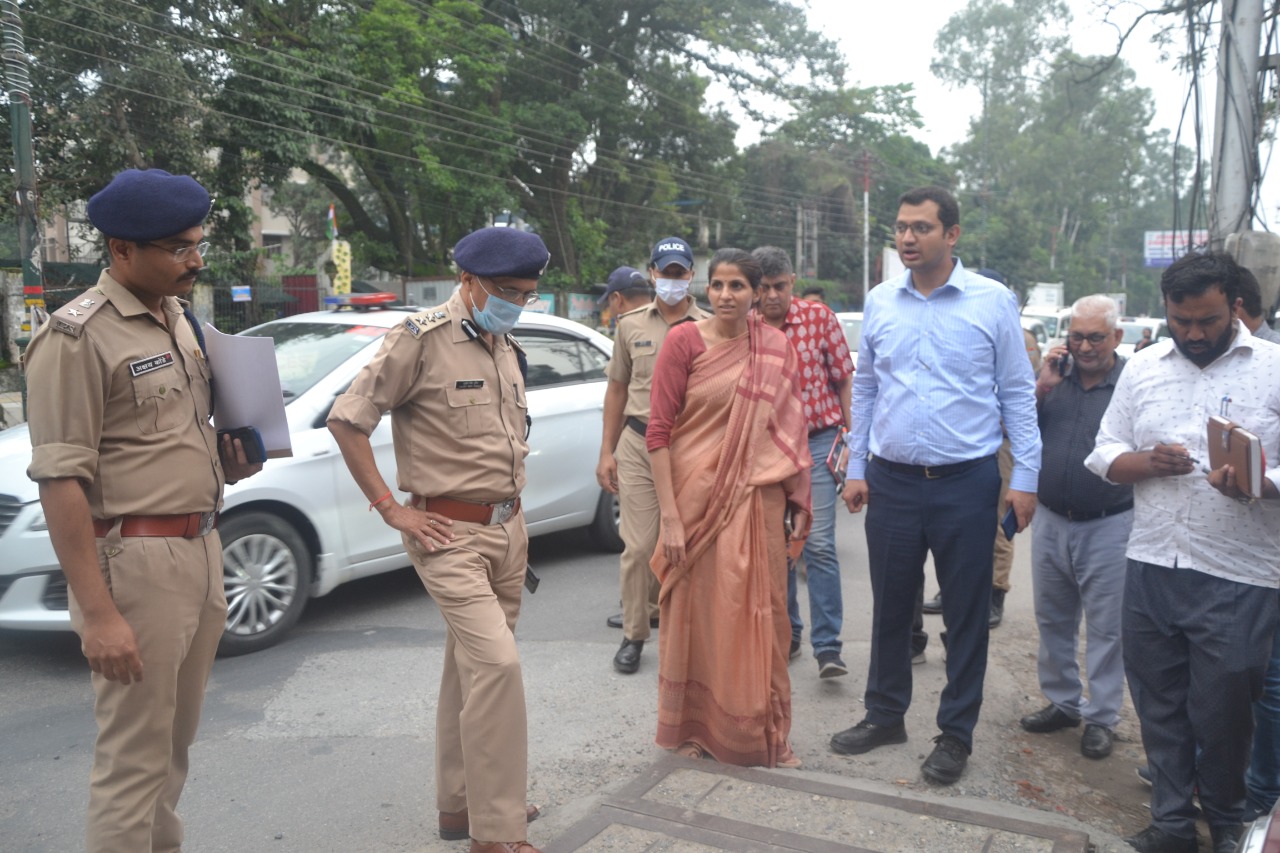 जिलाधिकारी श्रीमती सोनिका एवं वरिष्ठ पुलिस अधीक्षक दलीप सिंह कुवंर ने संयुक्त रूप से घंटाघर -एस्लेहाॅल-दिलाराम चैक का स्थलीय निरीक्षण किया।