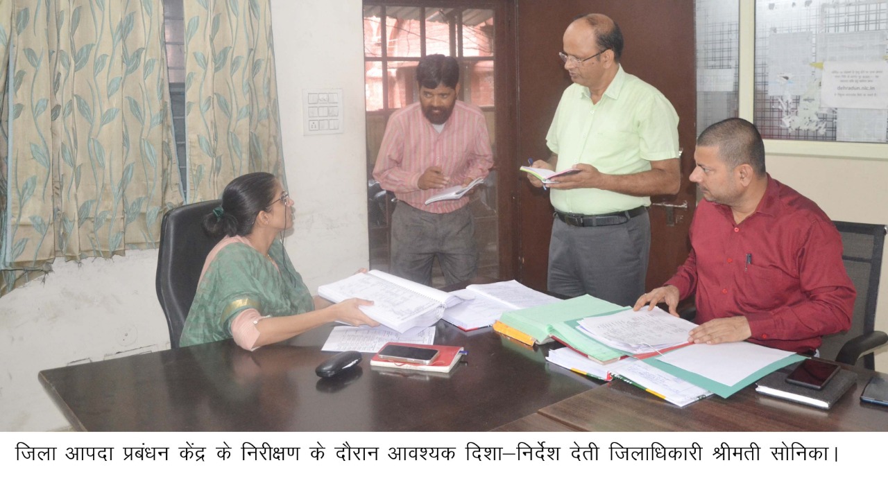 जिलाधिकारी श्रीमती सोनिका ने किया जिला आपदा प्रबंधन केंद्र का औचक निरीक्षण किया। इसके उपरान्त जिलाधिकारी ने बिंदाल नदी के समीप संगम विहार एवं सत्तोवाली घाटी गांधीग्राम के साथ ही चुना भट्टा के पास रिस्पना नदी पुल के समीप निरीक्षण किया।