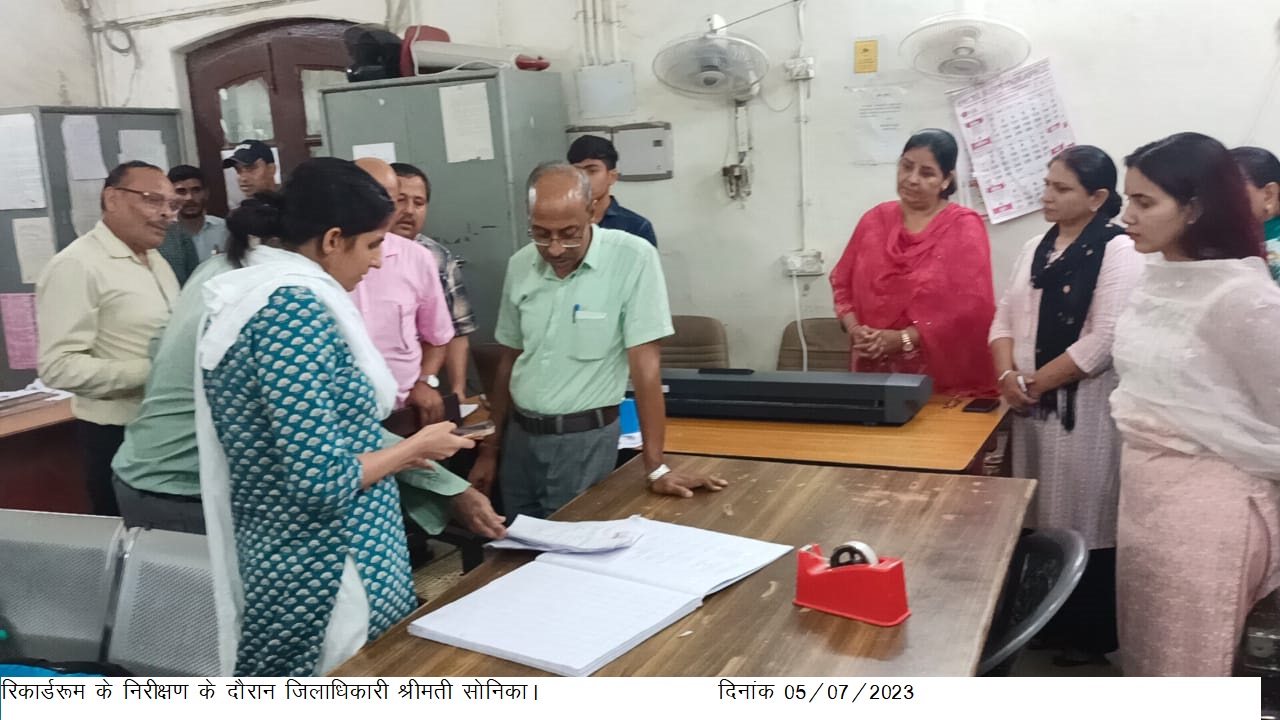 जिलाधिकारी श्रीमती सोनिका ने कलेक्टेट परिसर स्थित रिकार्डरूम का औचक निरीक्षण किया।