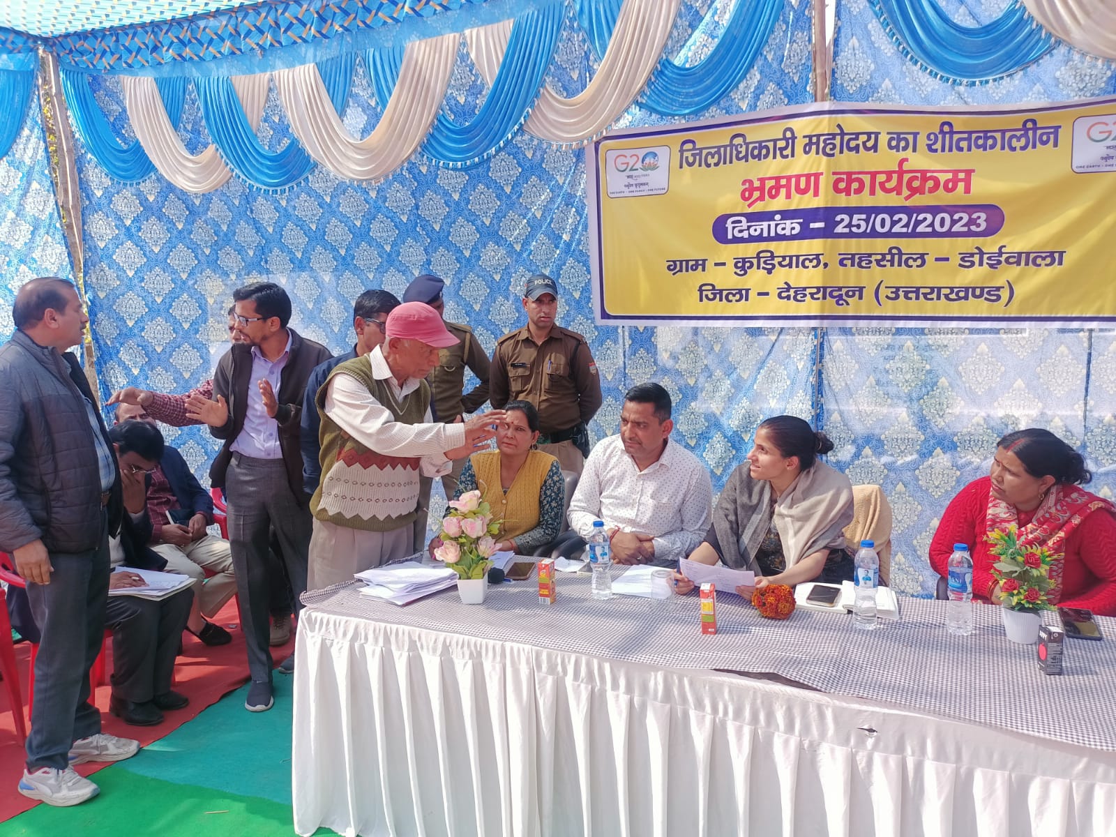 इसी प्रकार ग्रामवासियों द्वारा थानों, रामनगर, कुडियाल आदि क्षेत्र को पेयजल आपूर्ति करने वाले स्त्रोत में 500 मीटर पर बरसात में पेयजल लाईन क्षतिग्रस्त होती हैं बरसात में झील बन जाती है पानी का बहाव बदल रहा है, सर्वे करने का अनुरोध किया इस पर जिलाधिकारी ने सिंचाई, वन, जल संस्थान आदि सम्बन्धित विभागों को आवश्यक कार्यवाही करने के निर्देश दिए। स्थानीय निवासी निमादेवी ने अपनी पौत्री आरूषी जिसके पिता का देहांत हो गया है तथा पौत्री का एक हाथ ठीक से काम नहीं करता है जिसका प्रमाण-पत्र बनवाने के अनुरोध पर जिलाधिकारी ने समाज कल्याण अधिकारी को निर्देशित किया साथ ही चिकित्सा विभाग के अधिकारियों को निर्देशित किया बच्ची की फिजियोंथैरपी कराई जाए इसके लिए आरबीएसके वाहन की सेवा ली लाए। ग्रामवासियों द्वारा ग्राम कुडियाल में आंगनबाड़ी भवन बनाने के अनुरोध पर जिलाधिकारी ने सीडीपीओ से सम्बन्धित ग्राम प्रधान से प्रस्ताव प्राप्त करते हुए शिक्षा विभाग से अनुमति प्राप्त करने के निर्देश दिए। ग्रामवासियों द्वारा क्षेत्र में मोबाईल टावर लगाये जाने की मांग पर दूरसंचार निगम के अधिकारियों को दूरभाष पर निर्देश दिए। ग्रामवासियों द्वारा थानों से जोलीग्रान्ट एयरपोर्ट तक बस सेवा शुरू करने के अनुरोध पर सहायक सम्भागीय परिवहन अधिकारी ऋषिकेश को निर्देशित किया। साथ ही ग्रामसमाज की भूमि पर अवैध कब्जे की शिकायत पर जिलाधिकारी ने तहसीलदार डोईवाला को जांच कर कार्यवाही करने के निर्देश दिए। किसान सम्मान निधि की किश्त कई किसानों के खाते में न आने की शिकायत पर जिलाधिकारी ने मुख्य कृषि अधिकारी को निर्देशित किया जिस कृषि अधिकारी ने अवगत कराया कैम्प लगाकर डाटा प्राप्त कर लिया गया है। क्षेत्र में सिंचाई की समस्या की शिकायतों पर नलकूप खण्ड के अधिकारियों को कृत कार्यवाही करने के निर्देश दिए। ग्रामवासियों ने होम स्टे योजना का प्रचार-प्रसार किये जाने का अनुरोध किया।