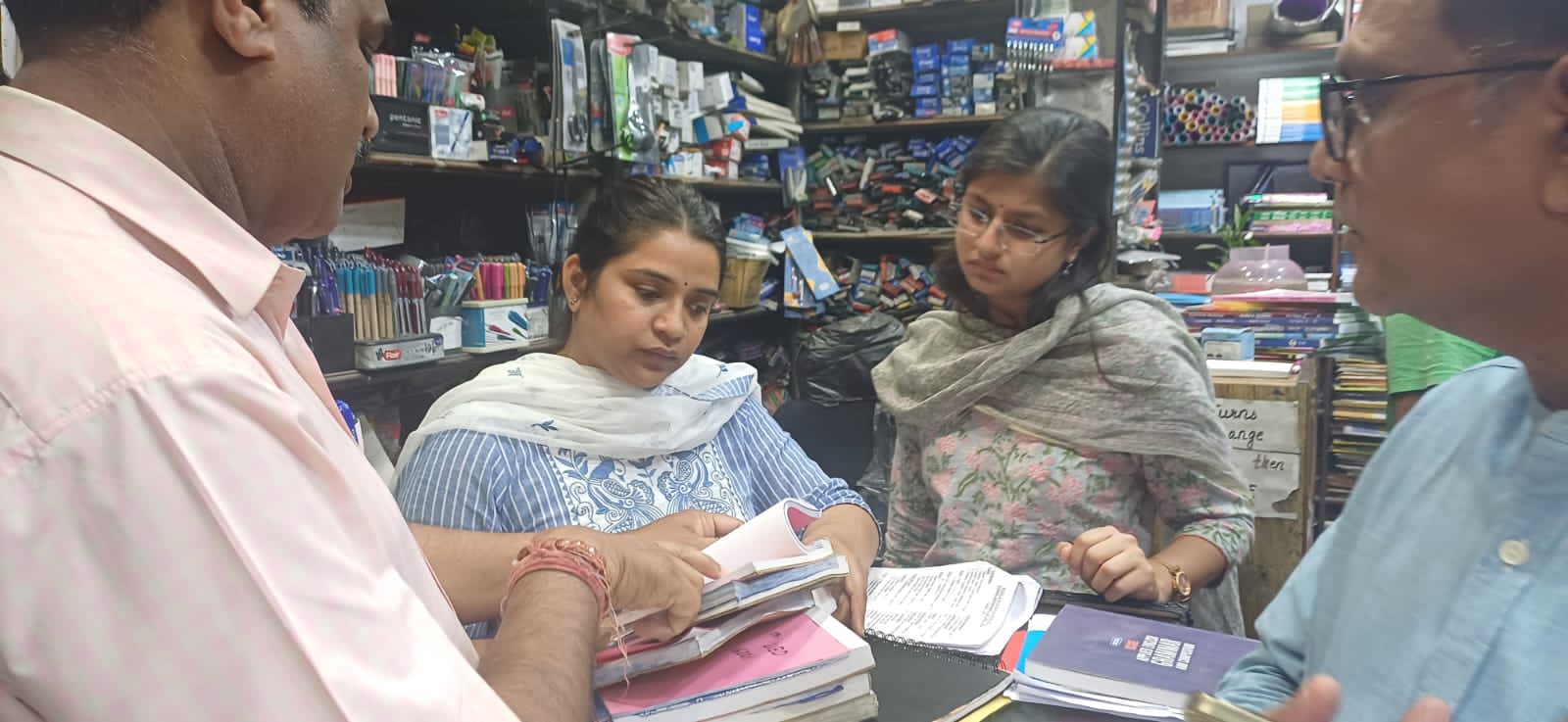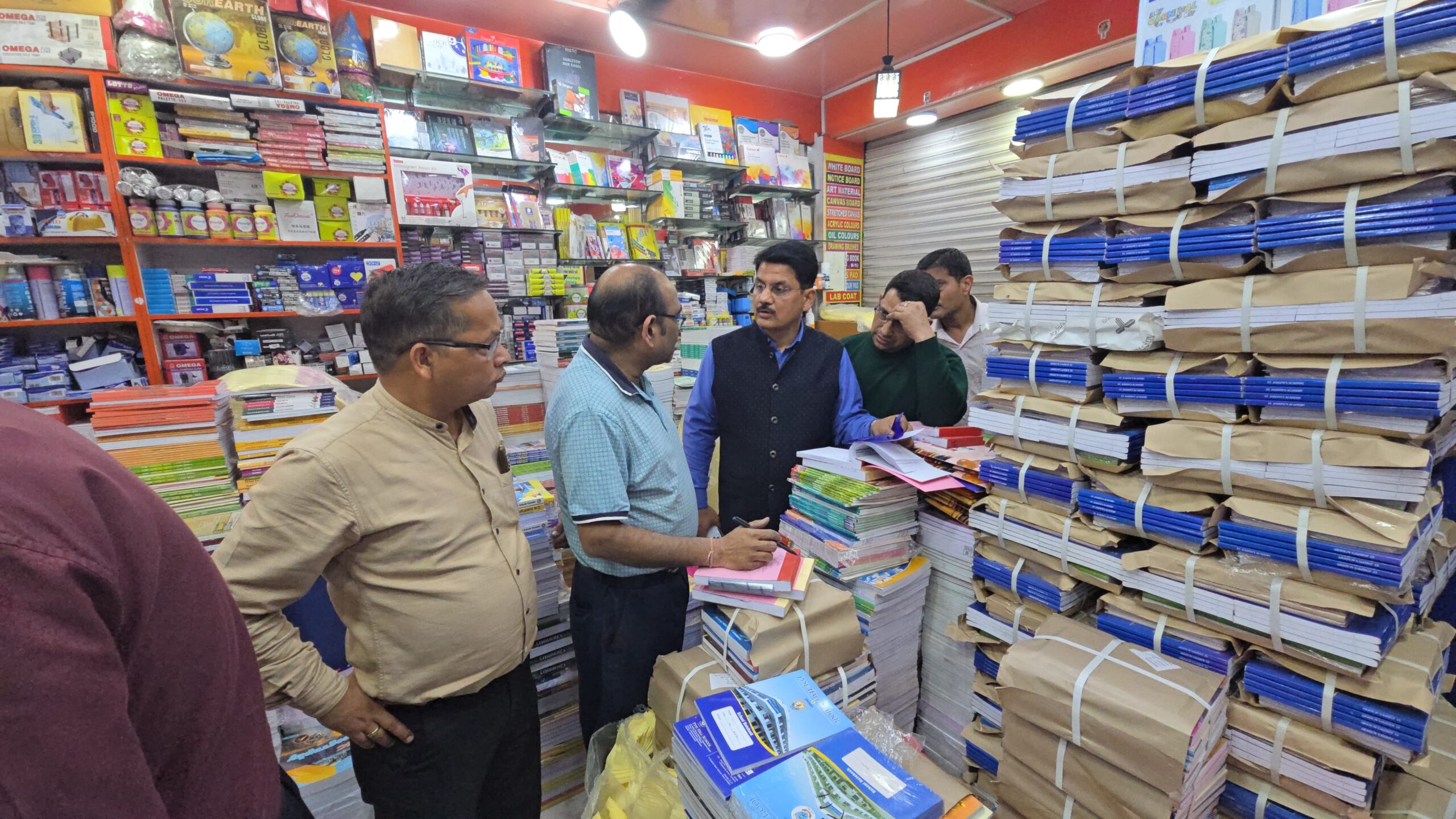 दुकानों पर पकड़ी गई जीएसटी चोरी। बड़े हुए मूल्य पर किताबें बेचने, बिना बिल के किताबें नोटबुक तथा अन्य सामान बेचने जीएसटी की चोरी, बिना बार कोडिंग के किताबें बेचने आदि शिकायतों के क्रम में यूनिवर्सल बुक हाउस की समस्त बिल बुक सीज कर ली गई हैं साथ ही बिना बार कोडिंग वाली किताबें सीज कर कार्रवाई प्रस्तावित की जा रही है।