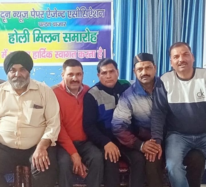 दून न्यूज पेपर एजेंट एसोसियेशन पल्टन बाजार के समस्त समाचार पत्र विक्रेता सिटी वेंकट हाल में एकत्रित हुए। सभी ने एक दूसरे को होली कि शुभकामनाएं दी। अन्य समाचार पत्र विक्रेता भाईयों ने अपने अपने विचार व्यक्त किए।