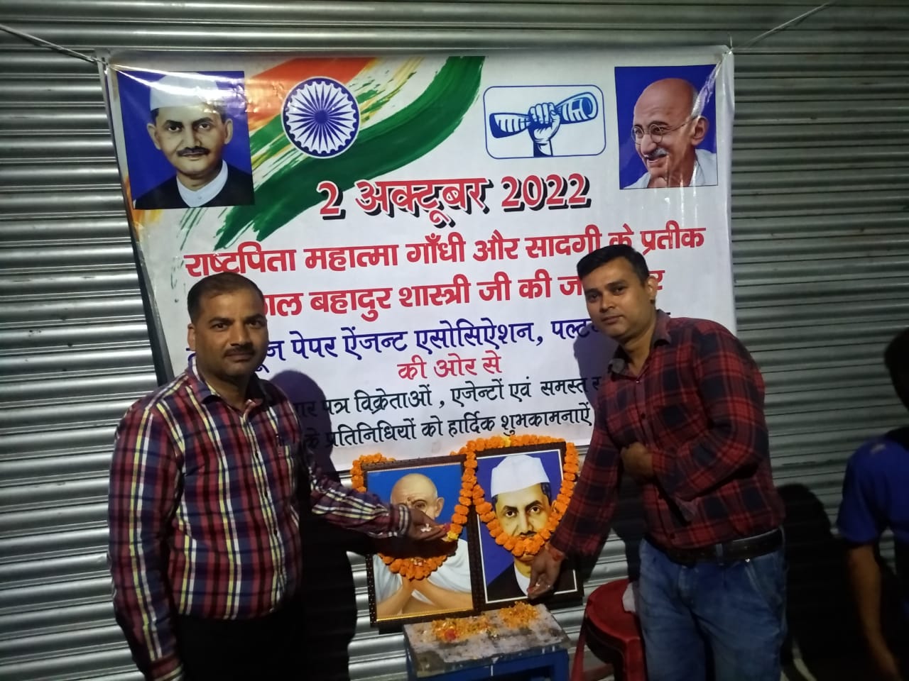 02 अक्टूबर को महात्मा गांधी जी व लाल बहादुर शास्त्री जी कि जयंती के शुभ अवसर पर समाचार पत्र विक्रेताओ ने एक एक करके महात्मा गांधी जी व लाल बहादुर शास्त्री जी की प्रतिमा पर पुष्प अर्पित किए।