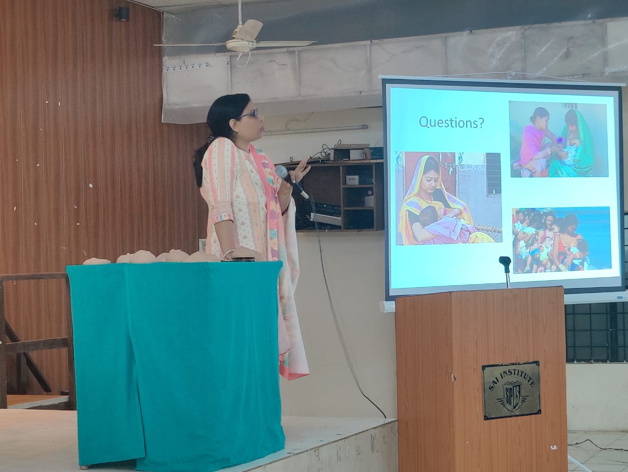 डॉ. सुजाता संजय ने छात्र-छात्राओं को स्तनपान के महत्व के बारे में बताया कि मातृत्व स्त्री के जीवन की संपूर्णता एवं सार्थकता समझी जाती है। इस वर्ष की थीम स्तनपान के लिए संकल्प-कामकाजी माता-पिता के लिए विशेष प्रयास है। उन्होंने बताया कि स्तनपान हर बच्चे का अधिकार है। ऑफिस संस्थानों को इस बारे में जागरूक करने की आवश्यकता है, जिससे कामकाजी महिलाएं अपने बच्चों को समुचित स्तन पान करा सकें। यदि प्रत्येक ऑफिस में कामकाजी महिलाओं की जरूरत के हिसाब से सुविधाजनक ब्रेस्टफीडिंग कक्ष की व्यवस्था हो तो महिला कर्मचारियों की कार्य क्षमता में तेजी आ सकती है। वर्ल्ड इकोनामिक फोरम के ग्लोबल जेंडर रिपोर्ट 2020 के अनुसार भारत में 20.33 फीसदी कामकाजी महिलाएं हैं, जिनमें से केवल 40 फीसदी कामकाजी माताएं ही अपने बच्चों को 6 माह तक स्तनपान और 2 साल तक की पूरक भोजन के साथ विशेष रूप से ब्रेस्ट फीडिंग करा पाती हैं।