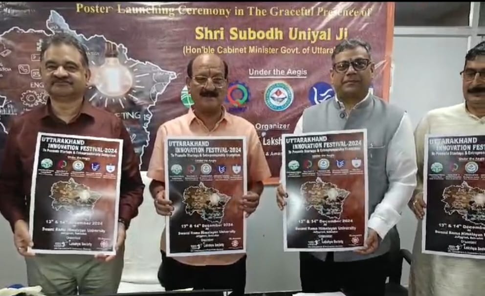 शिक्षा मंत्री सुबोध उनियाल ने आगामी दिसंबर माह में प्रस्तावित उत्तराखंड इनोवेशन फेस्टिवल-2024 के पोस्टर का लोकापर्ण किया।