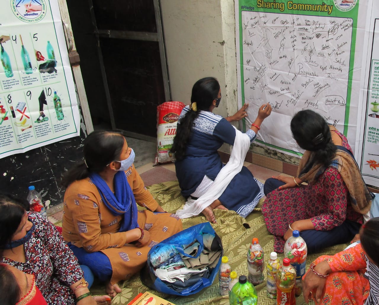 अभिव्यक्ति सोसाइटी की ओर से आयोजित किये गये शिविर में महिलाओं ने अपने घरों में कचरा बन चुके और इस्तेमाल न आने वाले सामान को डोनेट किया।