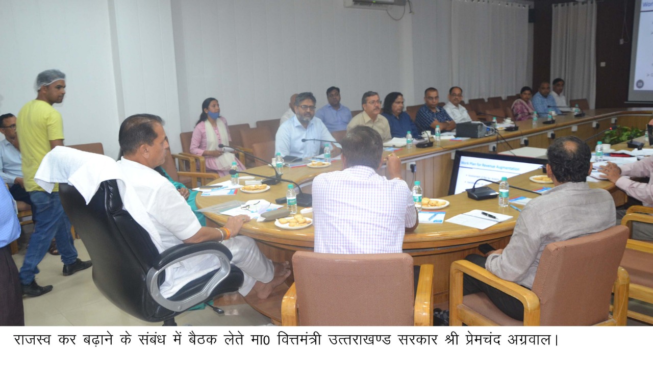 वित्त मंत्री श्री प्रेमचंद अग्रवाल ने आज रिंग रोड स्थित आयुक्त कर कार्यालय में राज्य में राजस्व बढ़ाने के संबंध में बैठक ली। वित्त मंत्री श्री प्रेमचंद अग्रवाल ने संबंधित अधिकारियों को राज्य में वृहद स्तर पर राजस्व बढ़ाने हेतु ठोस एवं प्रभावी कार्य योजना बनाने तथा प्रयास करने के निर्देश दिए। वित्त मंत्री ने कहा कि राजस्व बढ़ाने हेतु अन्य राज्यों में अपनाई जाने वाली बेस्ट प्रैक्टिसेज को उत्तराखंड की परिस्थितियों के अनुरूप राज्य में अपनाया जाना चाहिए। राजस्व बढ़ाने हेतु किए जाने वाले उपायों पर समयबद्ध तरीके से कार्य किया जाना चाहिए। उन्होंने कहा कि जहां भी व्यापारियों को जीएसटी संबंधित प्रक्रियाओं के विषय में संशय हो, वहां पर अधिकारियों द्वारा सकारात्मक संवाद द्वारा व्यापारियों को विश्वास में लिया जाना चाहिए। नियमित जीएसटी दाताओं को प्रोत्साहन स्वरूप सम्मानित किया जाना चाहिए। इस क्षेत्र में अच्छा कार्य करने वाले विभागीय अधिकारियों को भी नियमित रूप से प्रोत्साहित तथा सम्मानित किया जाना चाहिए। वित्त मंत्री श्री प्रेमचंद अग्रवाल ने हिमालयी राज्यों का जीएसटी एवं राजस्व संबंधित एक कॉन्क्लेव आगामी अक्टूबर में उत्तराखंड में आयोजित करने का सुझाव दिया।इस कॉन्क्लेव में हिमालयी राज्यों की राजस्व संबंधित समान चुनौतियां, समस्याओं एवं समाधान पर चिंतन किया जा सकता है।