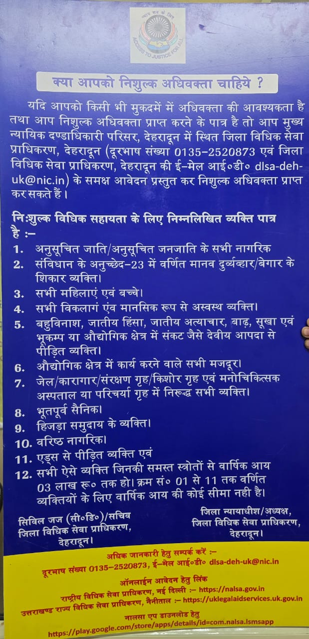(विधिक सहायता केन्द्र स्थापित,दो पैरालीगल वॉलिंटियर्स तैनात, प्रत्येेक सोमवार रोस्टरवार ड्यूटी)