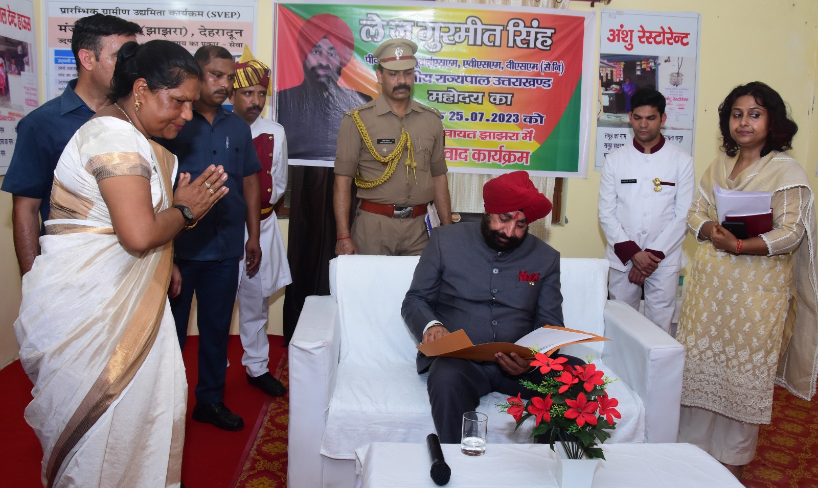 राज्यपाल लेफ्टिनेंट जनरल गुरमीत सिंह (से नि) ने सहसपुर ब्लॉक के ग्राम झाझरा का भ्रमण कर संचालित योजनाओं का निरीक्षण किया। राज्यपाल ने इस दौरान झाझरा ग्राम में स्थित आंगनबाड़ी केंद्र, स्वास्थ्य उपकेंद्र, स्कूल और विभिन्न विभागीय योजनाओं का भी निरीक्षण किया। ग्राम पंचायत झाझरा राज्यपाल द्वारा गोद लिया गया ग्राम है।