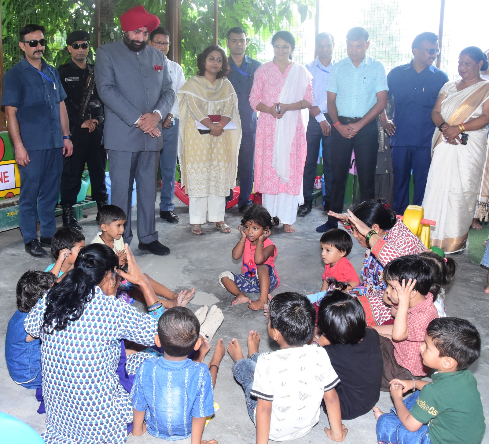 राज्यपाल ने आंगनबाड़ी केंद्र झाझरा पहुंचकर छोटे-छोटे बच्चों से मुलाकात की। उन्होंने आंगनबाड़ी सुपरवाइजर से केंद्र की जानकारी ली। स्वास्थ्य उपकेंद्र के निरीक्षण के दौरान उन्होंने केंद्र की जानकारी और वहां बच्चों के टीकाकरण सहित अन्य व्यवस्थाओं और सुविधाओं की विस्तृत जानकारी ली। राज्यपाल ने कहा कि आशा और आंगनबाड़ी कार्यकत्रियां बेहद श्रद्धा और परिश्रम से कार्य कर रही हैं और उनके कार्यों से वे हमेशा बेहद प्रभावित रहते हैं। इस दौरान अवगत कराया गया कि उन्हें बेहद कम मानदेय मिलता है जिस पर राज्यपाल ने उचित कार्यवाही का आश्वासन दिया।