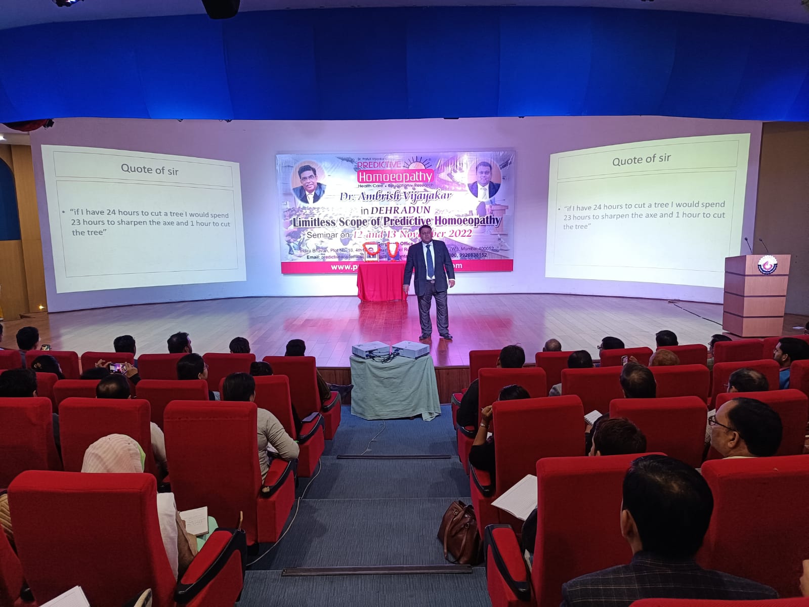 होम्योपैथीक चिकित्सको का सेमिनार ग्राफ़िक एरा हिल यूनिवर्सिटी के ऑडिटोरियम में आयोजित किया गया। मुम्बई के सुप्रसिद्ध चिकित्सक डॉ प्रफुल्ल विजयकर प्रेडिक्टिव होम्योपैथीक डॉ अम्बरीश विजयकर एवं डॉ तन्मय विजयकर जिनके द्वारा होमियोपैथी को 22वी सदी के प्रथम पंक्ति की चिकित्सा पद्धति बनाये जाने के प्रयासों के बारे में प्रकाश डाला।
