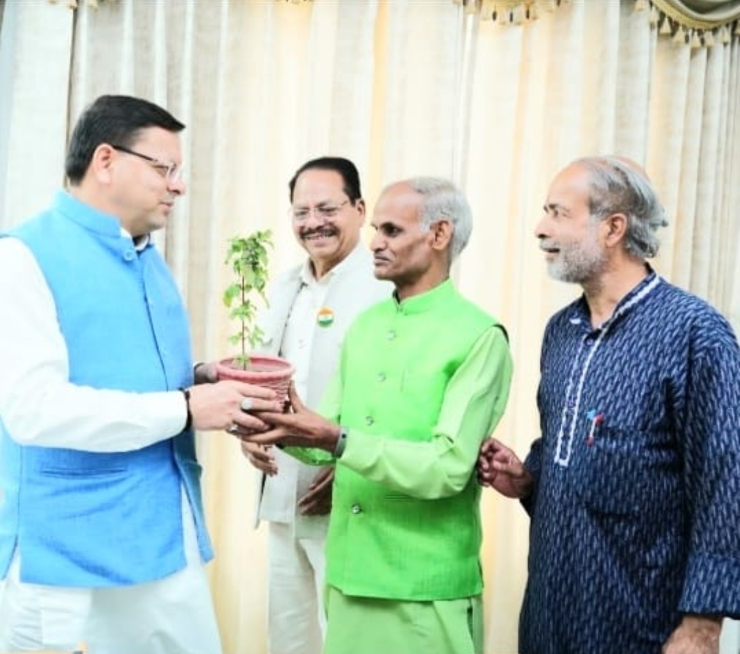 ग्रीनमैन विजयपाल बघेल ने मुख्यमंत्री श्री पुष्कर सिंह धामी से मुलाक़ात की।