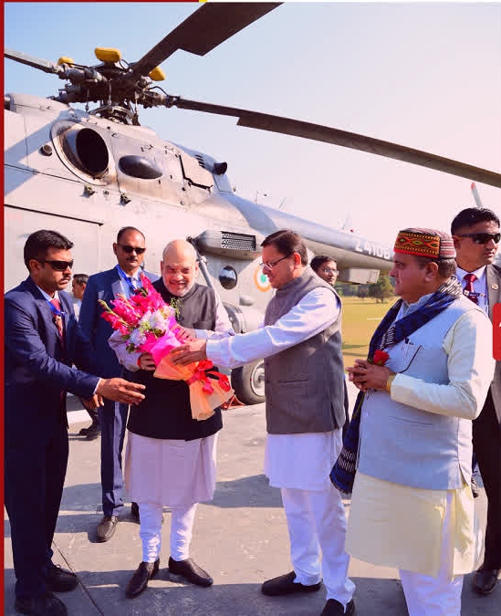 उत्तराखंड में वैश्विक निवेशक सम्मेलन के लिए देहरादून पहुंचे गृहमंत्री अमित शाह।