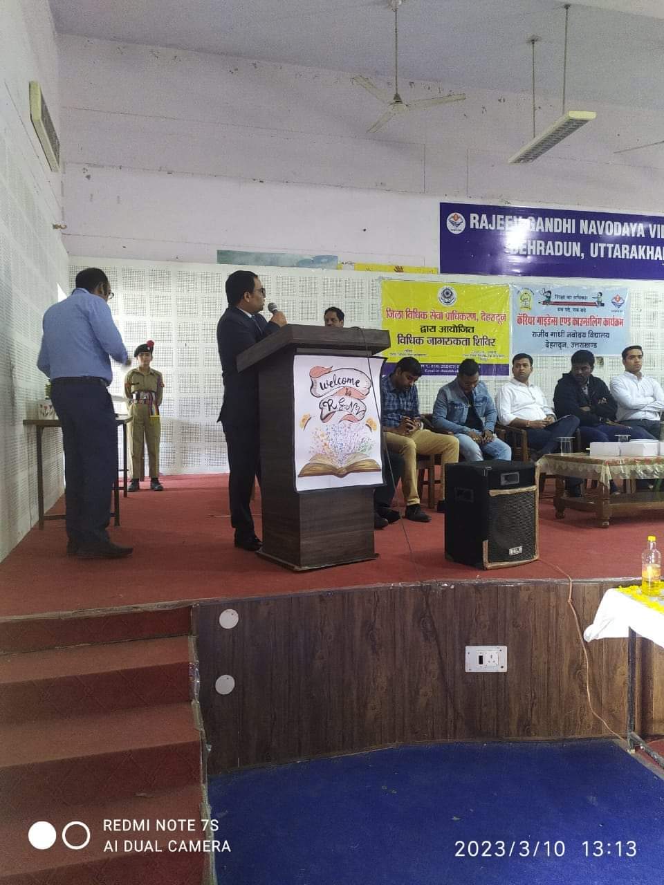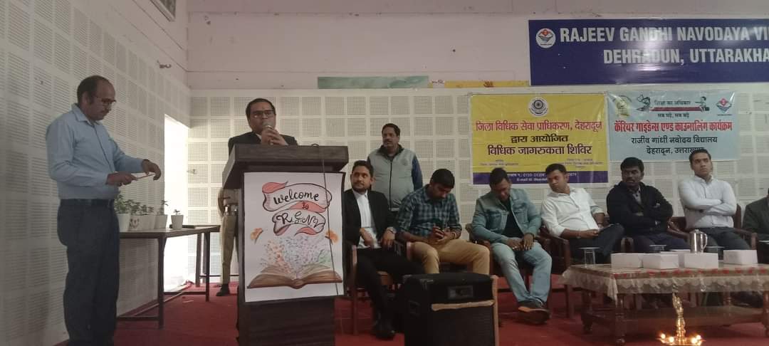 माननीय उत्तराखण्ड राज्य विधिक सेवा प्राधिकरण नैनीताल एवं मा० जिला न्यायाधीश/ मा० अध्यक्ष जिला विधिक सेवा प्राधिकरण, देहरादून के निर्देशानुसार जनपद देहरादून के राजीव गांधी नवोदय विद्यालय, नानूरखेड़ा, देहरादून में एक विधिक साक्षरता एवं जागरूकता शिविर का आयोजन किया गया।