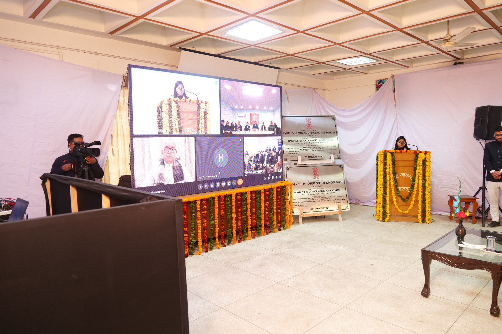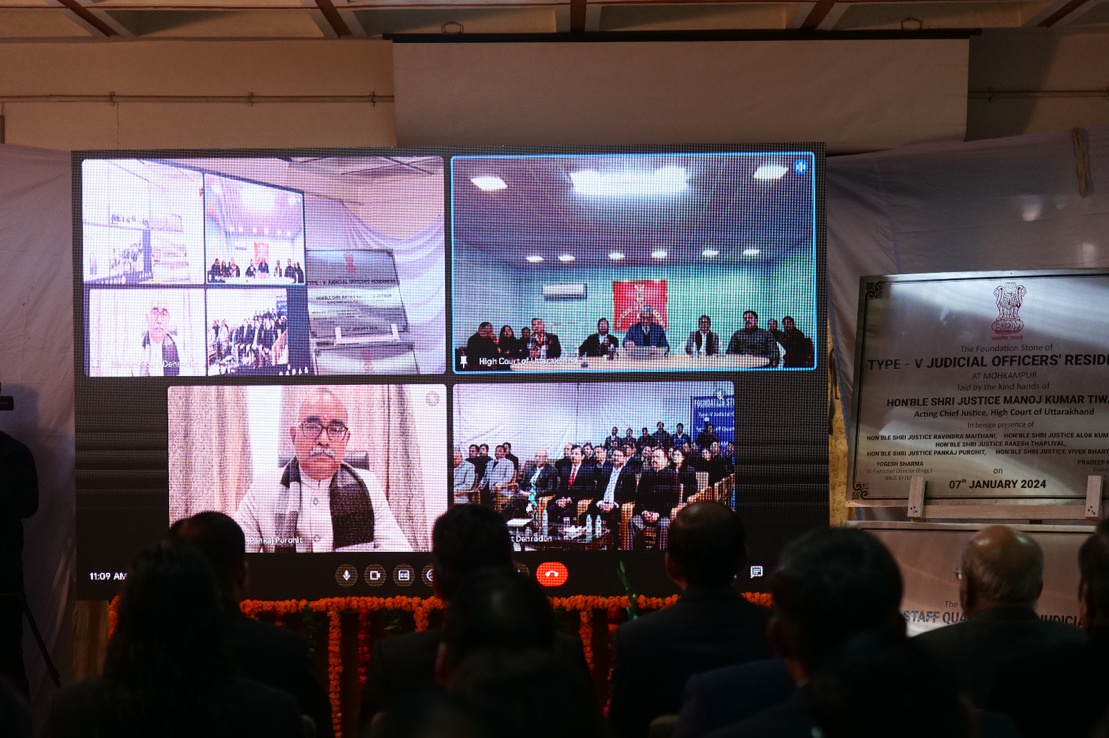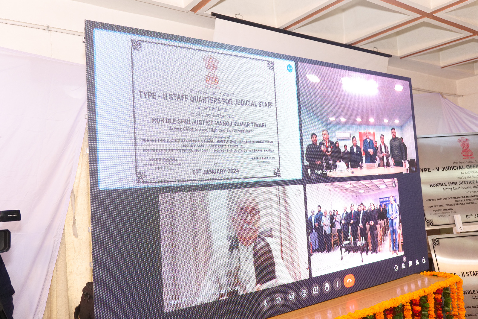 मा० उच्च न्यायालय उत्ताराखण्ड, नैनीताल न्यायमूर्ति श्री मनोज कुमार तिवारी जी द्वारा वर्चुअल माध्यम से न्यायाधीशगण तथा कर्मचारीगण के लिये नवीन आवासीय परिसर का शिलान्यास किया।