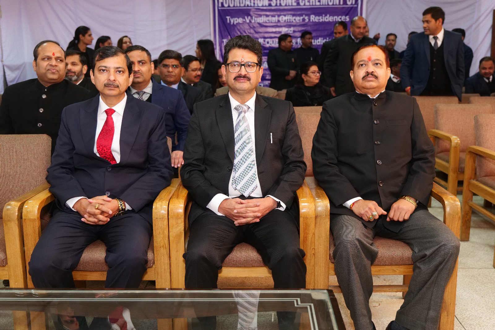 इस शिलान्यास कार्यक्रम में मुख्य अतिथि माननीय कार्यवाहक मुख्य न्यायाधीश, मा० उच्य न्यायालय उत्तराखण्ड, नैनीताल न्यायमूर्ति श्री मनोज कुमार तिवारी जी, मा० न्यायमूर्ति श्री आलोक कुमार वर्मा जी. मा० न्यायमूर्ति श्री राकेश थपलियाल जी, मा० न्यायमूर्ति श्री पंकज पुरोहित जी. भा० न्यायमूर्ति श्री विवेक भारती शर्मा जी, उच्च न्यायालय, उत्तराखण्ड, नैनीताल के महानिबन्धक श्री आशीष मैयानी जी, अन्य निबन्धकगण, प्रमुख सचिव, न्याय श्री नितिन शर्मा जी श्री राज्यपाल के विधिक सलाहकार श्री अमित कुमार सिरोही जी, प्रधान कुटुम्ब न्यायाधीश श्री राजीव कुमार खुल्ये जी, प्रमुख सचिव विधायी श्री एस० एम० डी० दानिश जी, जनपद देहरादून के न्यायिक अधिकारीगण, कार्यदायी संस्था एन० बी० सी० सी० के वरिष्ठ कार्यकारी निदेशक श्री योगेश शर्मा जी, बार ऐसोसिएशन देहरादून के सम्मानित पदाधिकारीगण एन० बी० सी० सी० के अपर महाप्रबन्धक श्री अनुराग सिंघल, अपरमहा प्रबन्धक सौरभ त्यागी भी उपस्थित रहे। कार्यकम का संचालन न्यायिक मजिस्ट्रेट, देहरादून श्रीमती उर्वशी रावत ने किया।
