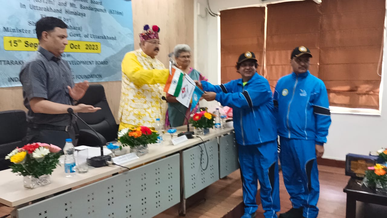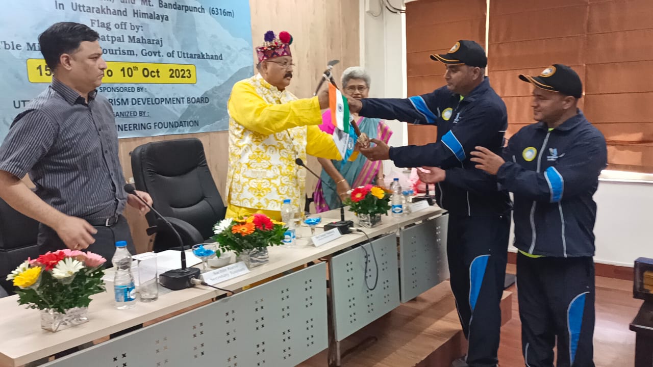 माननीय पर्यटन मंत्री श्री सतपाल महाराज ने बन्दरपूंछ-6316 मी0, भागीरथी द्वितीय-6512 मी0 पर्वतों पर पर्वतारोहण अभियान का फ्लैग ऑफ कर रवाना किया।