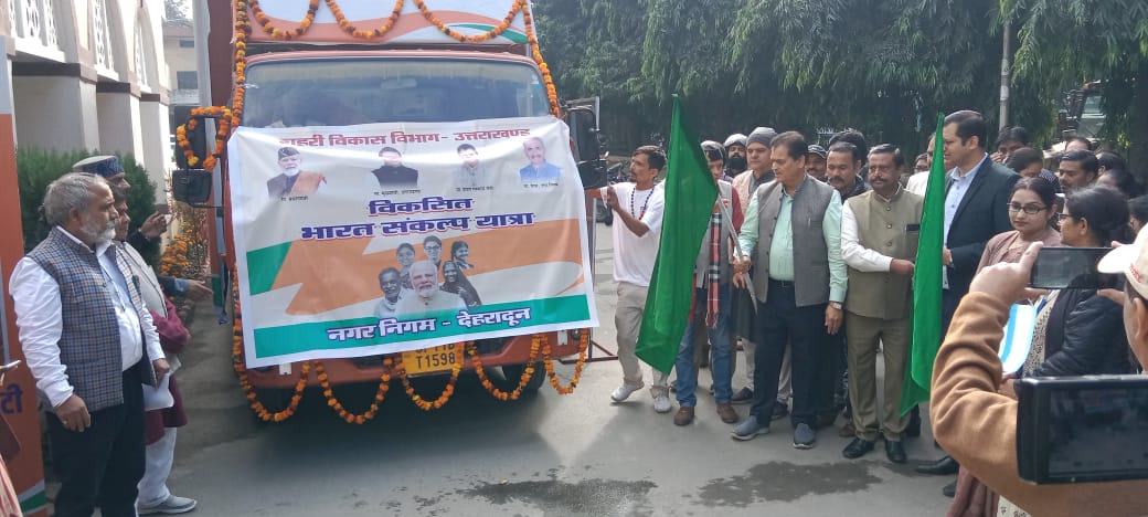 मा0 शहरी विकास मंत्री डॉ प्रेमचन्द अग्रवाल द्वारा भारत सरकार द्वारा ‘‘विकसित भारत संकल्प यात्रा’’ का शुभारम्भ शहरी क्षेत्रों हेतु किया गया। इस मौके पर मंत्री डॉ प्रेमचंद अग्रवाल ने बताया कि यात्रा का उद्देश्य भारत सरकार की प्रमुख जन-लाभार्थी परक योजनाओं का समयबद्ध रूप से संतृप्तिकरण करना तथा सक्रिय जन-भागीदारी के माध्यम से इन योजनाओं की जागरूकता बढ़ाना है। उन्होंने कहा कि शहरी विकास विभाग के अन्तर्गत संचालित पीएम स्वनिधि योजना के संतृप्तिकरण हेतु शिविरों का आयोजन किया जायेगा तथा वैन द्वारा पी०एम० आवास योजना, स्वच्छ भारत मिशन तथा अमृत योजना की जानकारी भी प्रदान की जायेगी। साथ ही अन्य विभागों के द्वारा भी शिविरों के माध्यम से सरकार की जनकल्याणकारी योजनाओं की जानकारी एवं लाभार्थियों को योजना के लाभ से आच्छादित किया जायेगा। शहरी क्षेत्रों में संचालन एवं क्रियान्वयन हेतु नगर आयुक्त / अधिशासी अधिकारी नोडल अधिकारी होंगे। प्रथम चरण में आज से नगर निगम, देहरादून (22 कैम्प), हरिद्वार (10 कैम्प) तथा छावनी परिषद्, गढ़ी कैन्ट (3 कैम्प) में वीडियो वैन संचालित की जायेगी, जिस हेतु रूट चार्ट प्रेस इन्फोरमेशन ब्यूरो द्वारा जनपदों से समन्वय कर तैयार किया जा रहा है। कुल 35 कैम्प आयोजित किये जाने प्रस्तावित है।