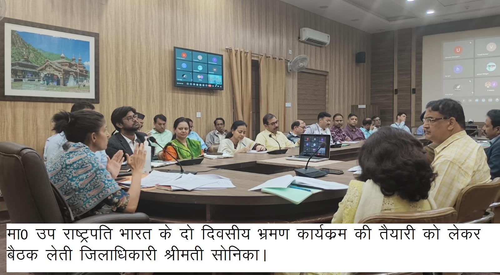 मा0 उप राष्ट्रपति भारत श्री जगदीप धनखड़ अपने दो दिवसीय भ्रमण पर जनपद देहरादून में कल 26 अक्टूबर को पहुंचेंगे। मा0 उप राष्ट्रपति के भ्रमण कार्यक्रम की समुचित व्यवस्था एवं तैयारियों को लेकर जिलाधिकारी श्रीमती सोनिका ने मजिस्ट्रेट/अधिकारियों को नामित करते हुए संबंधित अधिकारियों के साथ बैठक ली। उन्होने भ्रमण कार्यक्रम के दौरान कानून एवं शांति व्यवस्था तथा आवश्यक व्यवस्थाओं व सौंपे गए दायित्वों के निर्वहन को लेकर सम्बन्धित अधिकारी को आवश्यक दिशा-निर्देश दिए।