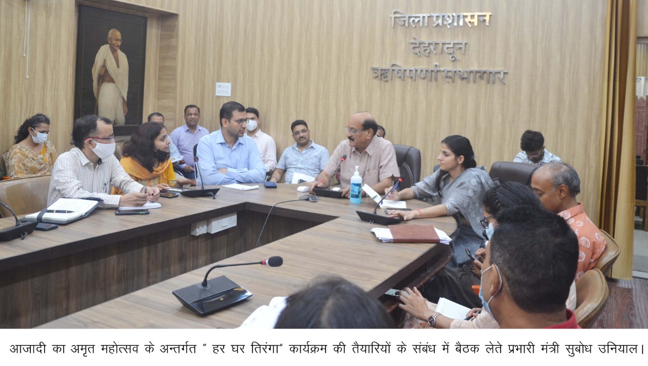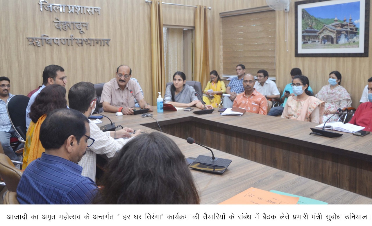 प्रभारी मंत्री श्री सुबोध उनियाल ने आजादी का अमृत महोत्सव के अन्तर्गत “ हर घर तिरंगा” कार्यक्रम की तैयारियों के संबंध में बैठक आयोजित की।