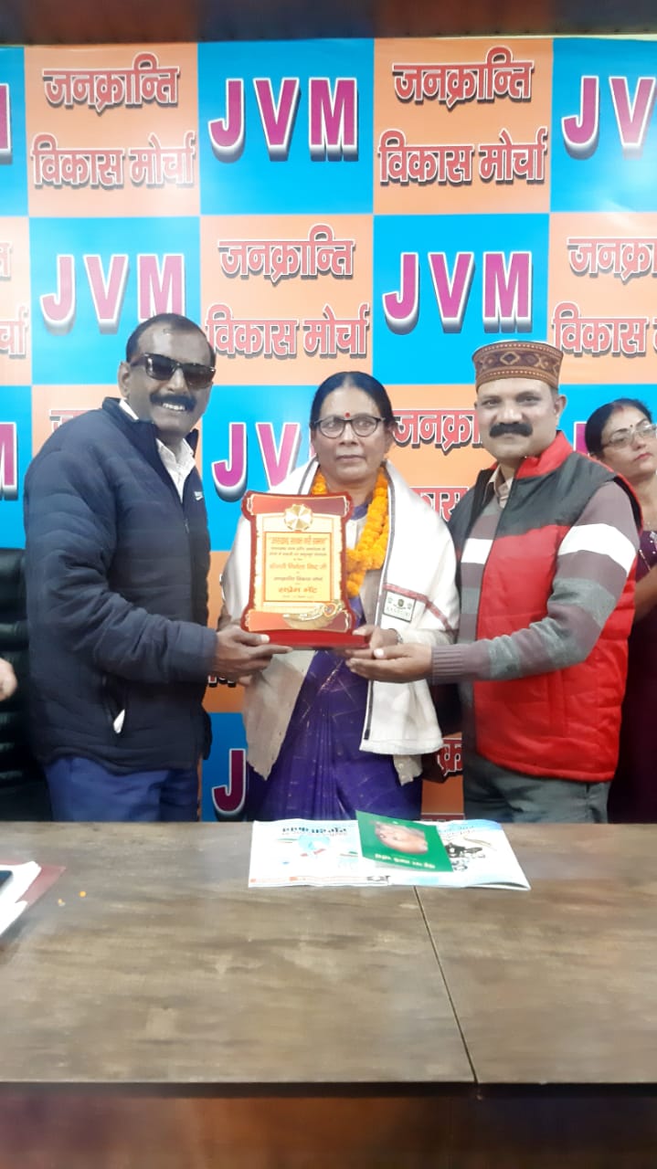 जनक्रान्ति विकास मोर्चा ने श्रीमती निर्मला बिष्ट जी को उत्तराखंड सशक्त नारी सम्मान से सम्मानित किया।