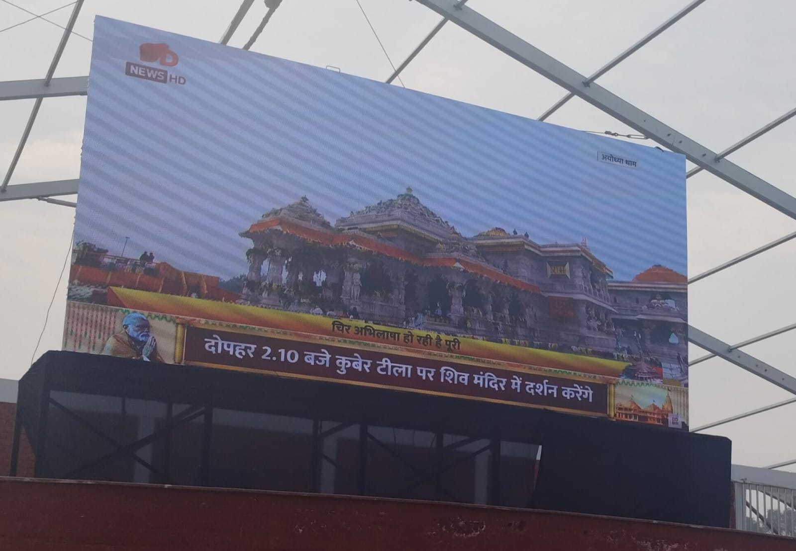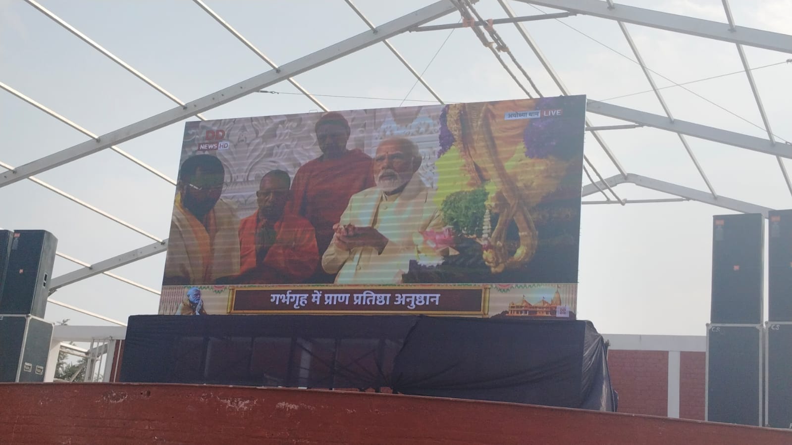 भगवान श्री राम मंदिर के प्राण प्रतिष्ठा समारोह, पूजा, आरती का सजीव प्रसारण एलईडी के माध्यम से किया गया।