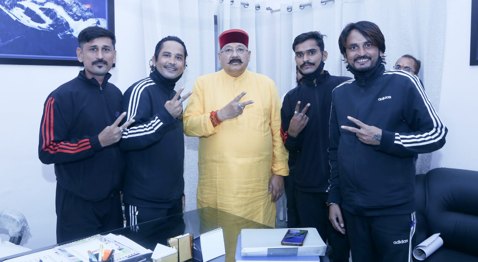माउंट एवरेस्ट पर तिरंगा फहराने के साथ-साथ 11 देशों में 4 लाख 21 हजार किलोमीटर की पैदल यात्रा करने वाले पर्वतारोही दल के सदस्यों ने शनिवार को प्रदेश के पर्यटन, लोक निर्माण, सिंचाई, धर्मस्व एवं संस्कृति मंत्री श्री सतपाल महाराज से सुभाष रोड स्थित उनके कैंप कार्यालय पर मुलाकात कर आशीर्वाद लिया।