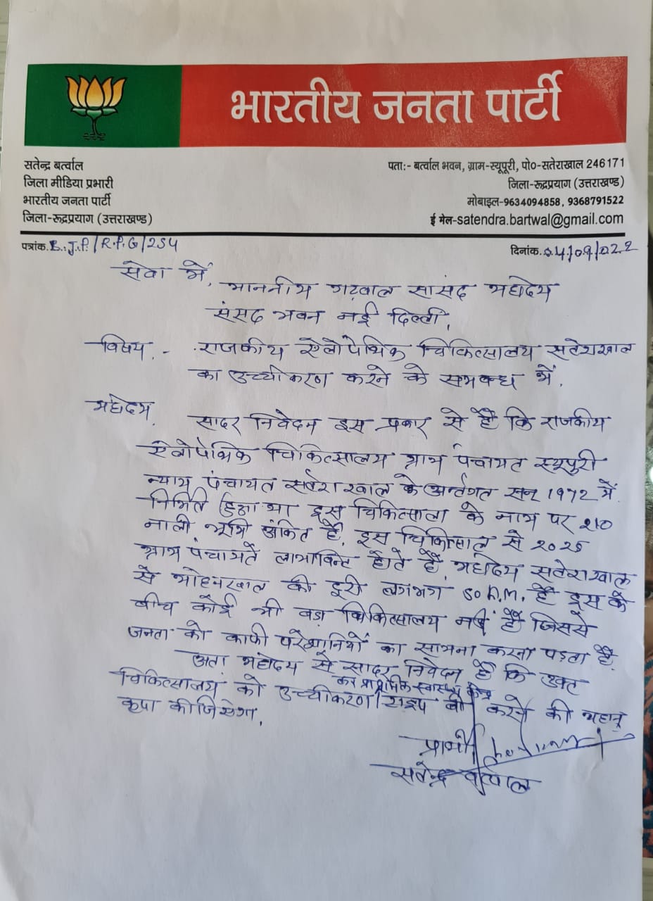 इस मौके पर मंडल अध्यक्ष गंभीर सिंह बिष्ट एवं क्षेत्र के लोगों ने ग्रामसभा खारसी तोक से सिल्ली तोक तक विधुत लाइन को ठीक करने के संदर्भ में , क्षेत्र की विभिन्न सड़को के संदर्भ में , सतेराखाल में राष्ट्रीय कृत ए टी एम खोलने की मांग की।