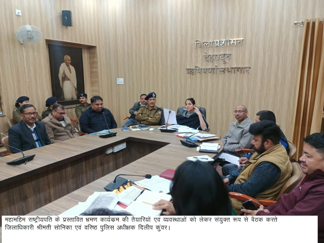 महामहिम राष्ट्रपति भारत के जनपद में प्रस्तावित भ्रमण कार्यक्रम की तैयारियों एवं व्यवस्थाओं को लेकर जिलाधिकारी श्रीमती सोनिका एवं वरिष्ठ पुलिस अधीक्षक दिलीप सिंह कुंवर ने संयुक्त रूप में ऋषिपर्णा सभागार में बैठक आहूत करते हुए सम्बन्धित अधिकारियों को आवश्यक दिशा-निर्देश दिए। इसके उपरान्त जिलाधिकारी एवं वरिष्ठ पुलिस अधीक्षक देहरादून ने कार्यक्रम दून विश्वविद्यालय का निरीक्षण किया।