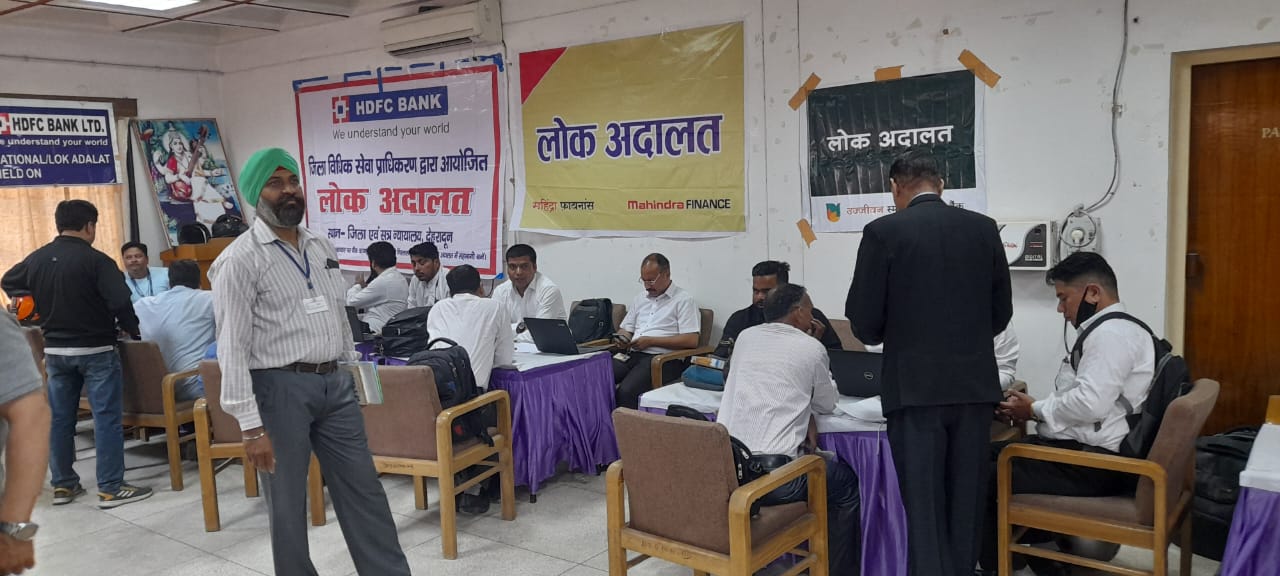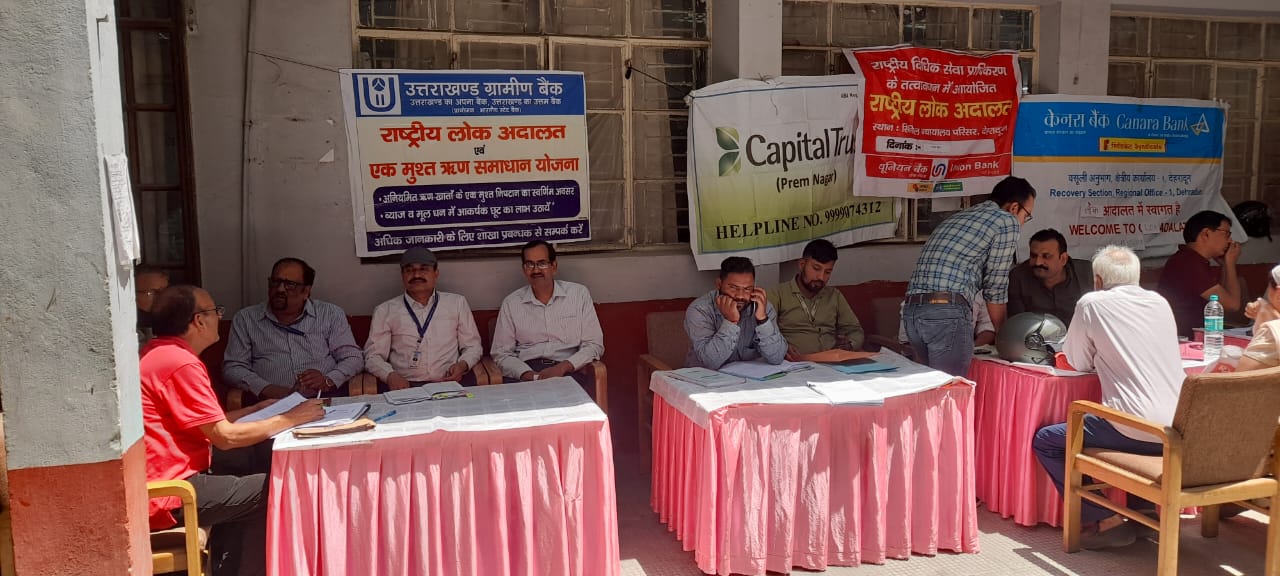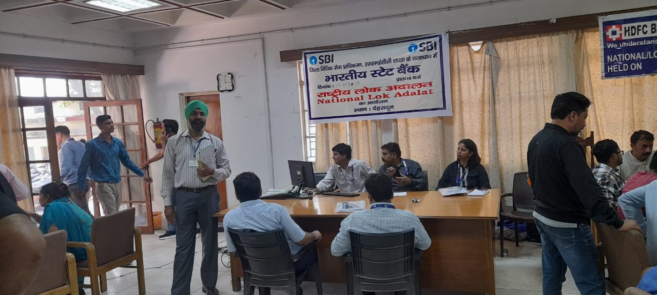 माननीय राष्ट्रीय विधिक सेवा प्राधिकरण, नई दिल्ली के निर्देशानुसार जिला विधिक सेवा प्राधिकरण, देहरादून के तत्वावधान में आज प्रातः 10.00 बजे से सायं 05.00 बजे तक जिला मुख्यालय देहरादून, बाह्य न्यायालय ऋषिकेश, विकासनगर एवं डोईवाला जनपद देहरादून के न्यायालयों में राष्ट्रीय लोक अदालत का आयोजन किया गया। इस लोक अदालत में मोटर दुर्द्यटना क्लेम, सिविल मामले, पारिवारिक मामलें, चैक बाउन्स से सम्बंधित मामलें व अन्य शमनीय प्रकृति के अपराधिक मामलें लगाये गये थें।