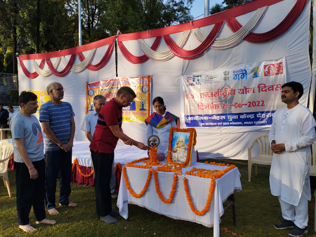 नेहरू युवा केन्द्र संगठन, युवा कार्यक्रम एवं खेल मंत्रालय भारत सरकार के तत्वावधान में आजादी का अमृत महोत्सव के तहत 8 वें अन्तराष्ट्रीय योग दिवस के उपलक्ष में सभी आयु वर्ग के लोगों को 100 दिन तक योग करने हेतु 14 मार्च, 2022 से 21 जून, 2022 तक जनपद देहरादून के विभिन्न स्थानों पर राष्ट्रीय युवा स्वयं सेवकों एवं युवा क्लब के सदस्यों के माध्यम से योगाभ्यास, व्यायाम, ध्यान, प्राणायाम, पदयात्रा एवं पेंटिंग प्रतियोगिता का आयोजन किया गया।