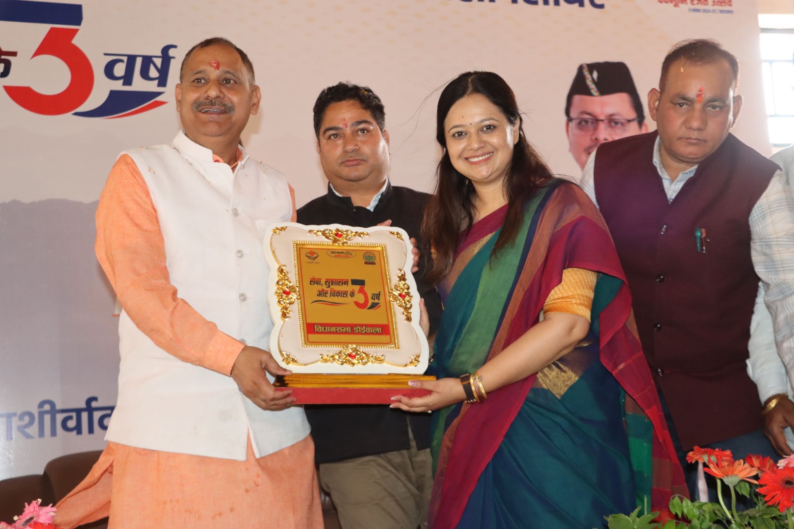मुख्यमंत्री पुष्कर सिंह धामी के नेतृत्व में उत्तराखंड सरकार के सेवा, सुशासन और विकास के सफल 3 वर्ष पूर्ण होने के अवसर पर विधानसभा क्षेत्र डोईवाला में बहुउद्देशीय और चिकित्सा शिविर का आयोजन किया गया। यह कार्यक्रम डोईवाला के आशीर्वाद वाटिका में आयोजित हुआ, जिसकी अध्यक्षता डोईवाला के विधायक बृजभूषण गैरोला ने की। कार्यक्रम में नगर पालिका अध्यक्ष नरेंद्र सिंह नेगी, पूर्व राज्य मंत्री कारण बोरा, ब्लॉक प्रमुख भगवान सिंह पोखरियाल, उप जिलाधिकारी अपर्णा ढौंडियाल, तहसीलदार सोहन सिंह राणा सहित कई गणमान्य उपस्थित रहे।