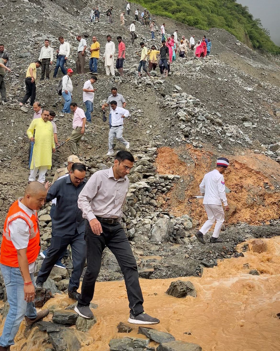 मा0 मुख्यमंत्री पुष्कर सिंह धामी के निर्देश पर आपदाग्रस्त अंतिम गांव बटोली दौरे पर प्रथम पंक्ति में पहुचें जिलाधिकारी सविन बंसल।