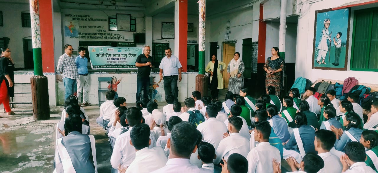 अंतर्राष्ट्रीय स्वच्छ वायु दिवस के अवसर पर नगर निगम, देहरादून के सौजन्य से ईकोग्रुप सोसाइटी, देहरादून द्वारा लक्ष्मण भारतीय इण्टर कॉलेज, 4 विष्णु रोड, देहरादून में छात्र/छात्राओं को वायु प्रदूषण से वातावरण में होने वाले दुष्प्रभाव व उन्हें कम करने की जानकारी प्रदान की गयी।