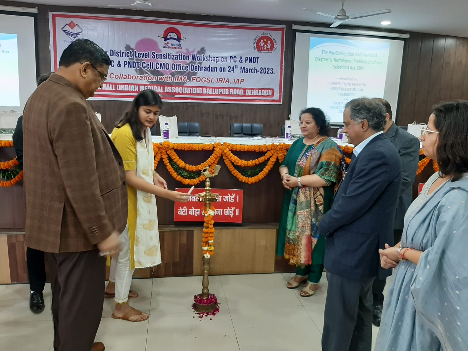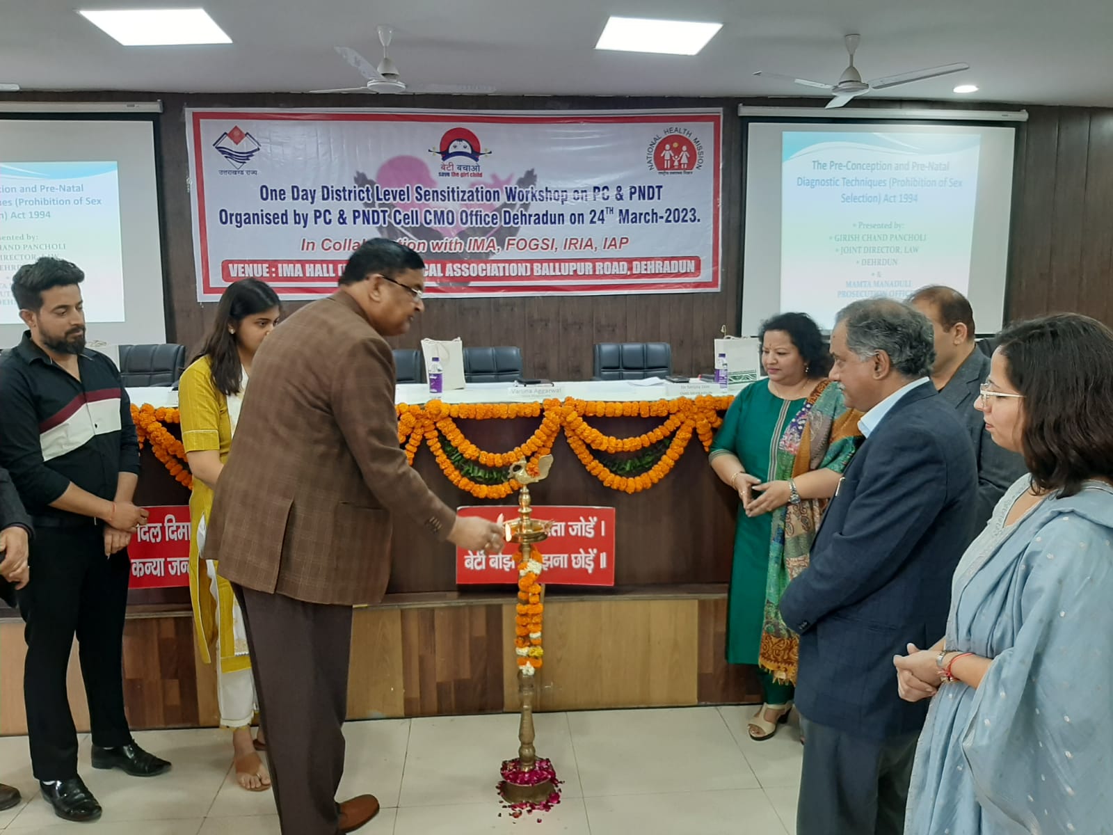 आज मुख्य चिकित्सा अधिकारी कार्यालय स्थित पीसीपीएनडीटी प्रकोष्ठ द्वारा इंडियन मेडिकल एसोसिएशन सभागार में एक दिवसीय जिला स्तरीय संवेदीकरण कार्यशाला का आयोजन किया गया। जनपद देहरादून में लिंगानुपात असमानता को दूर करना और पीसीपीएनडीटी अधिनियम की पूर्ण जानकारी चिकित्सकों को उपलब्ध कराना इस कार्यशाला का मुख्य उद्देश्य रहा। कार्यशाला में जनपद देहरादून में कार्यरत सरकारी और गैर सरकारी चिकित्सकों (स्त्री रोग विशेषज्ञ, बाल रोग विशेषज्ञ व रेडियोलॉजिस्ट) द्वारा प्रतिभाग किया।